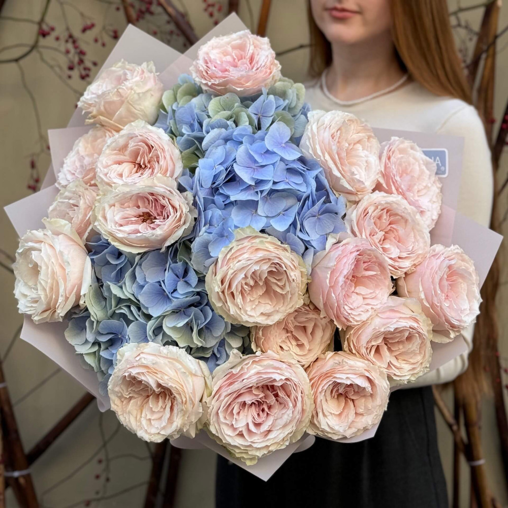 Квіти: Гортензія, Троянда піоновидна Tsumugi