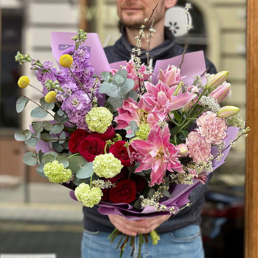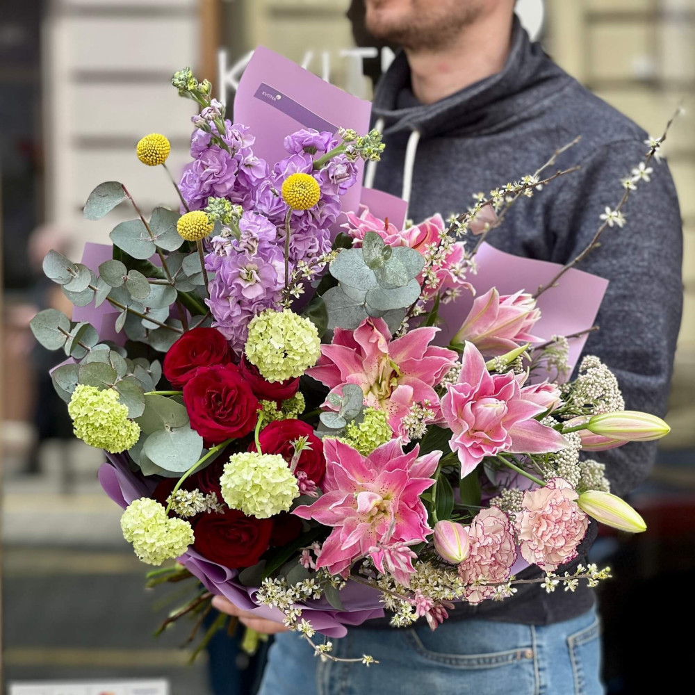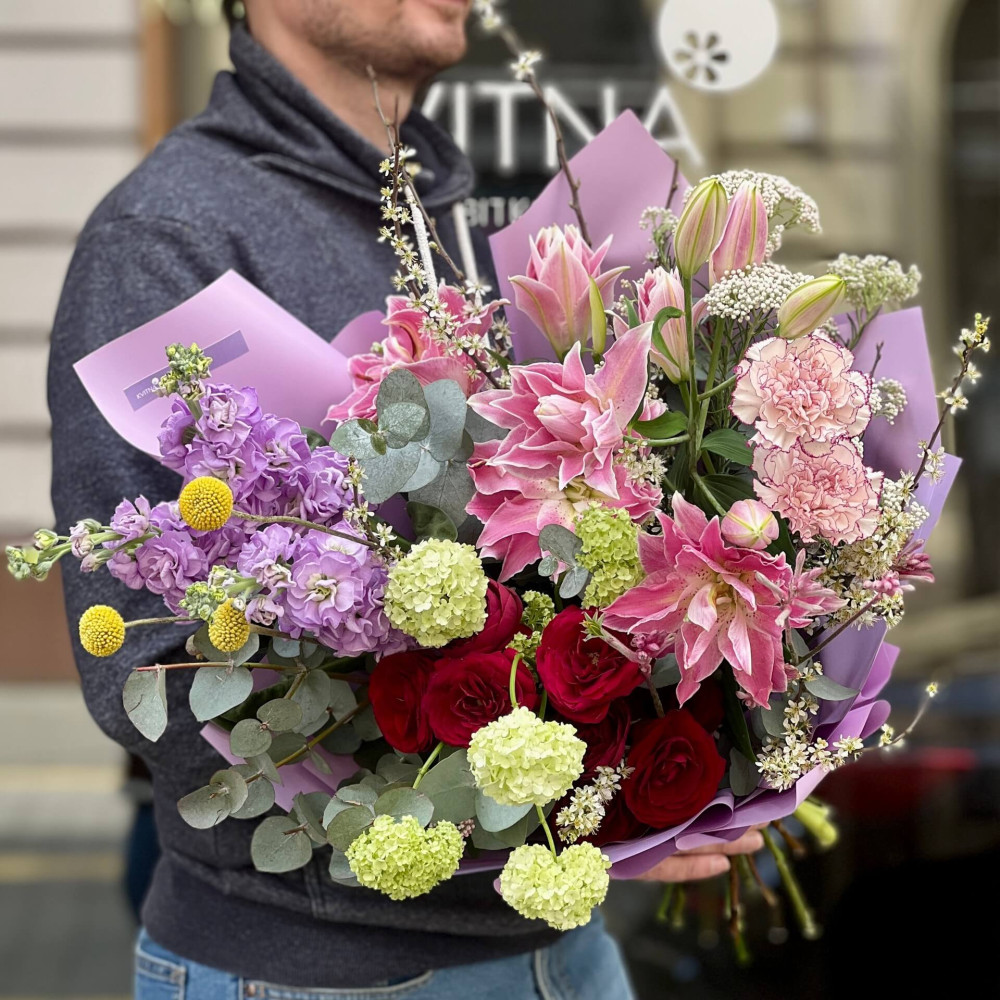 І це, до речі, зовсім не обов'язково плюси, це особливості, які потрібно розуміти. Тоді і вибір «де купити букет у Львові» зробити буде значно простіше.- Кожен букет Kvitna унікальний. Це означає, якщо Ви замовите у нас якийсь із букетів на сайті, то Ви не отримаєте точнісінько такий же. Деяких це бентежить, такі люди не хочуть «ризикувати», бажають «в точності, як на світлині». У «Квітна» кожен букет — це творчий пошук, це захоплення, злиття з квітами, образом одержувача і завданням. Так, ми можемо прийняти за вектор, зробити схожий букет, в тому ж стилі, кольоровій гамі, з тих самих квітів ... Але нам нудно робити за шаблоном. Адже букет, представлений на зображенні, робився для іншої людини, з іншого приводу, під інший настрій і натхнення. У Вас буде все по-іншому.