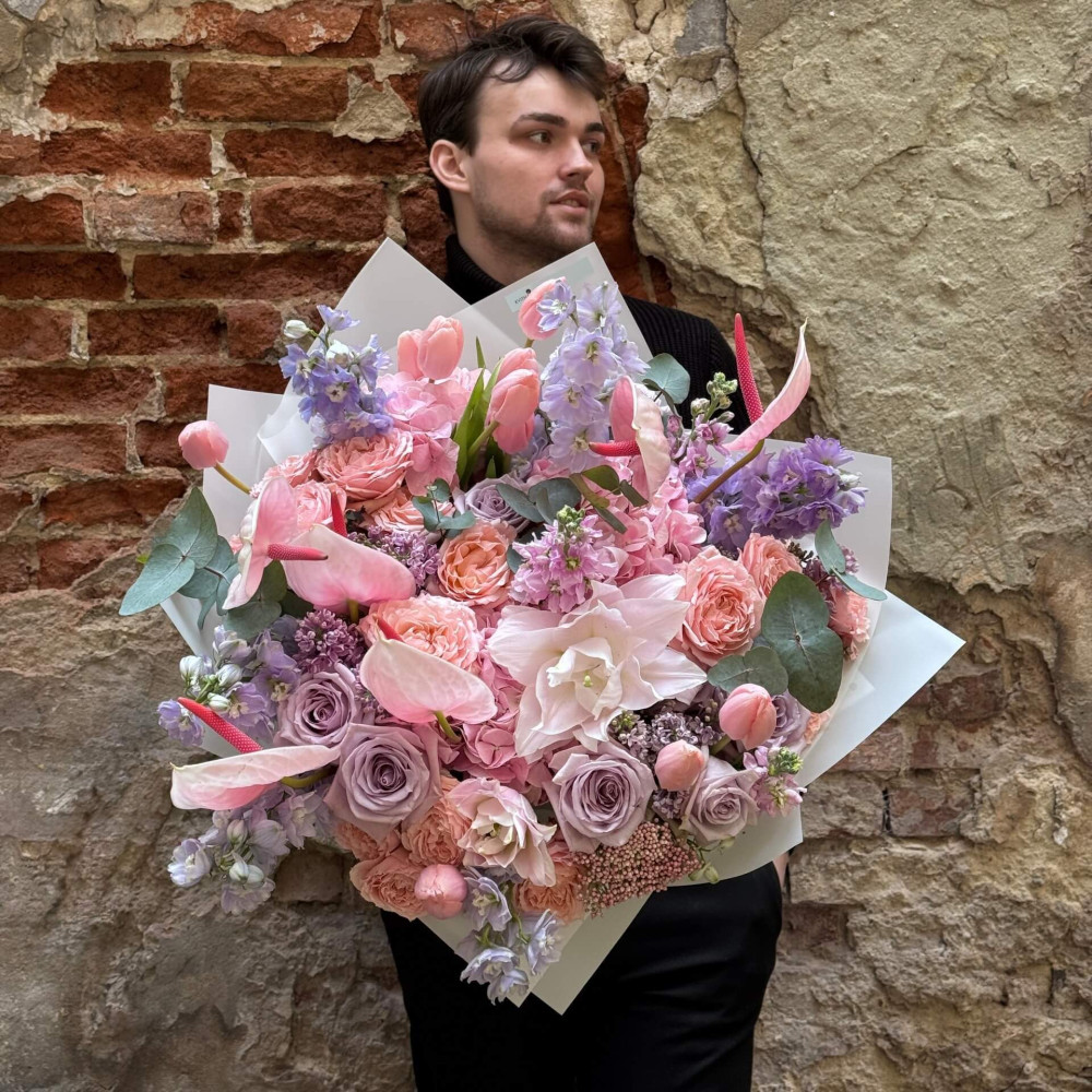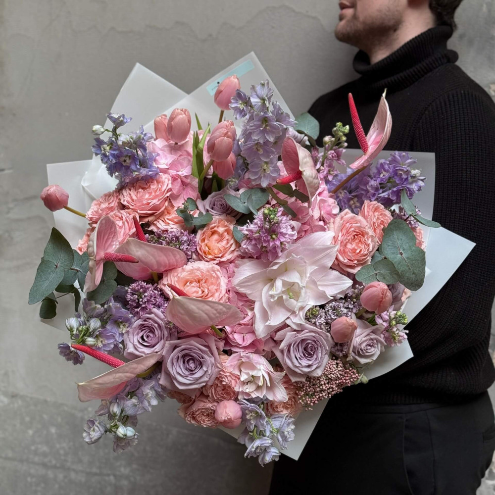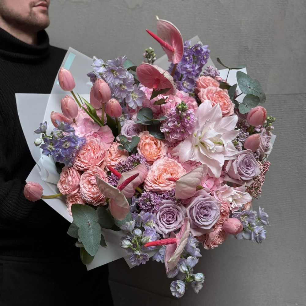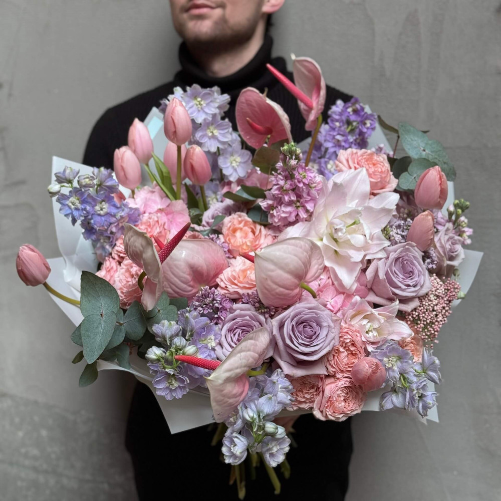 Квіти: Гортензія, Бузок, Антуріум, Евкаліпт, Дельфініум, Лілія, Тюльпан, Матіола, Троянда, Троянда піоновидна кущова, Озотамнус