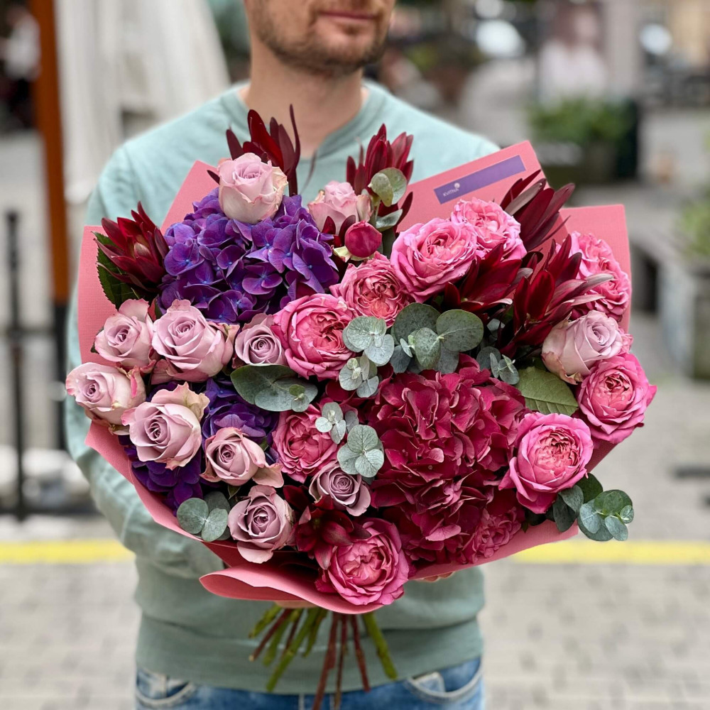 - Як замовити Розкішний букет з гортензіями «Вечірня прогулянка»? ❯