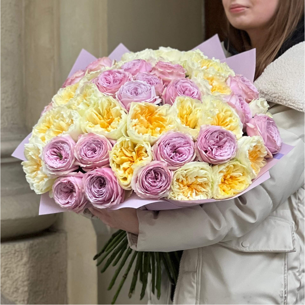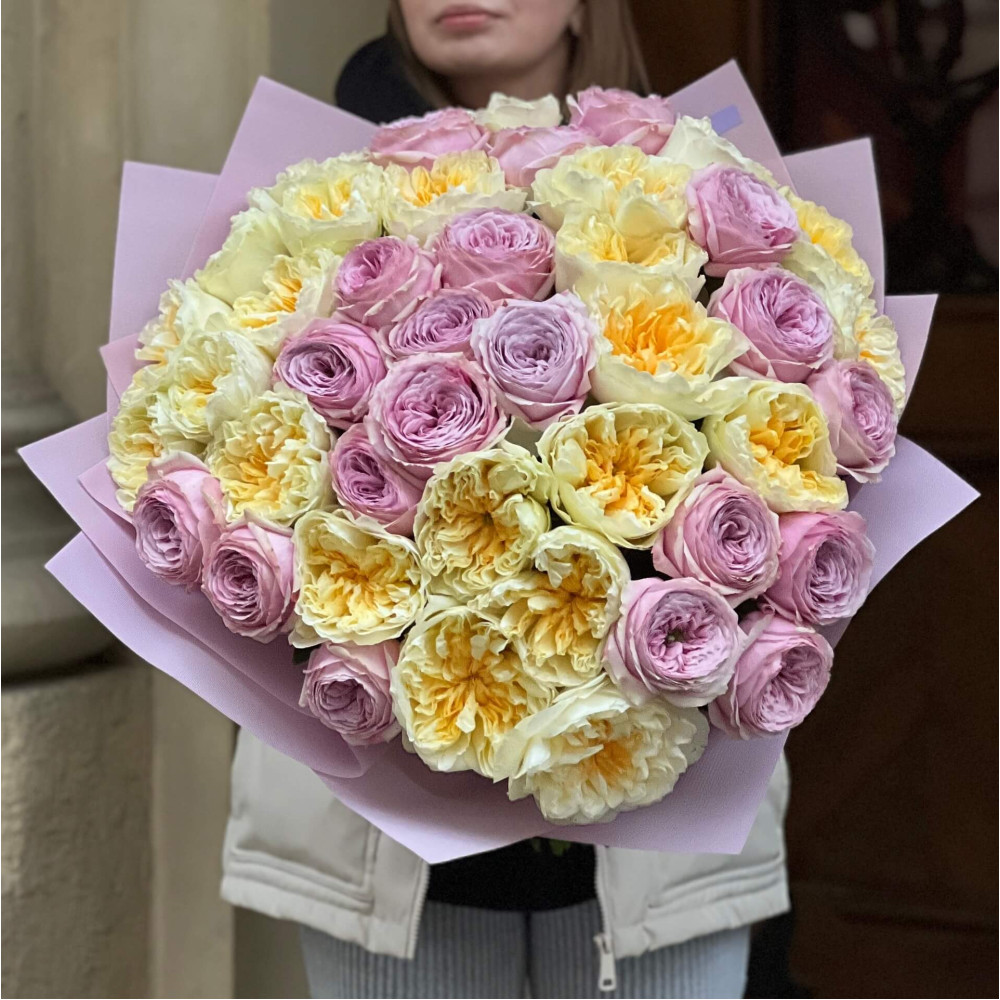 - Як замовити Розкішний світлий букет із 43 півонієвидних троянд Antonia та Peony Kiss «Сонячний дотик»? ❯