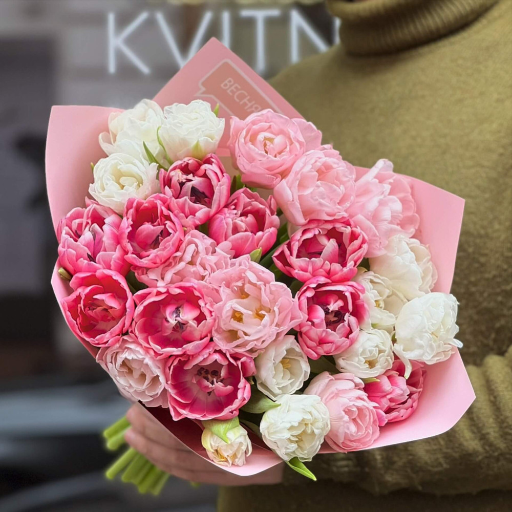 - Як замовити Румʼяний мікс із піоновидних тюльпанів «Присмак полуниці»? ❯