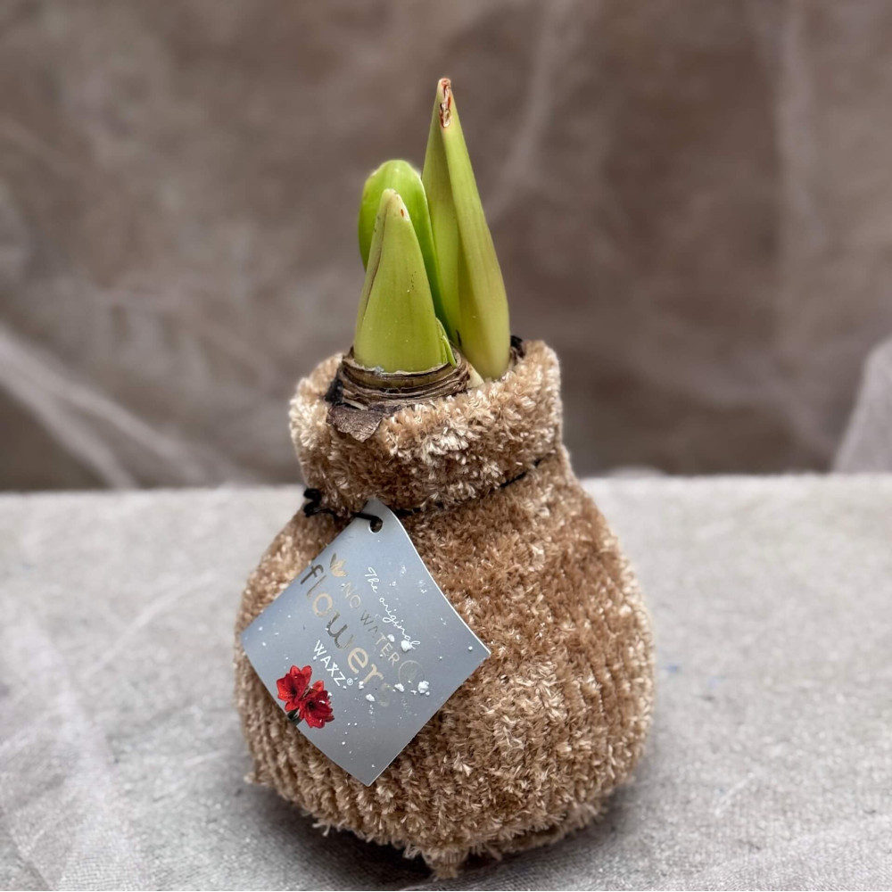 Тренд Різдва 2025 року! Сет з воскованих амарилісів, одягнених у вʼязані светрики. Чудова окраса різдвяного інтерʼєру або як подарунок до Миколая.