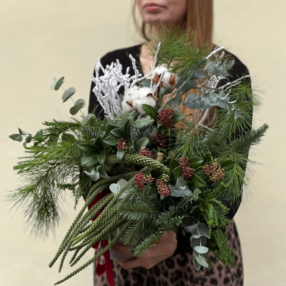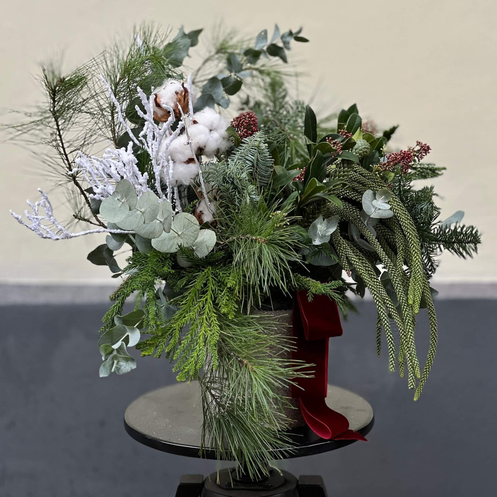 - Як замовити Сезонна композиція із хвої та бавовни «Снігова заметіль»? ❯