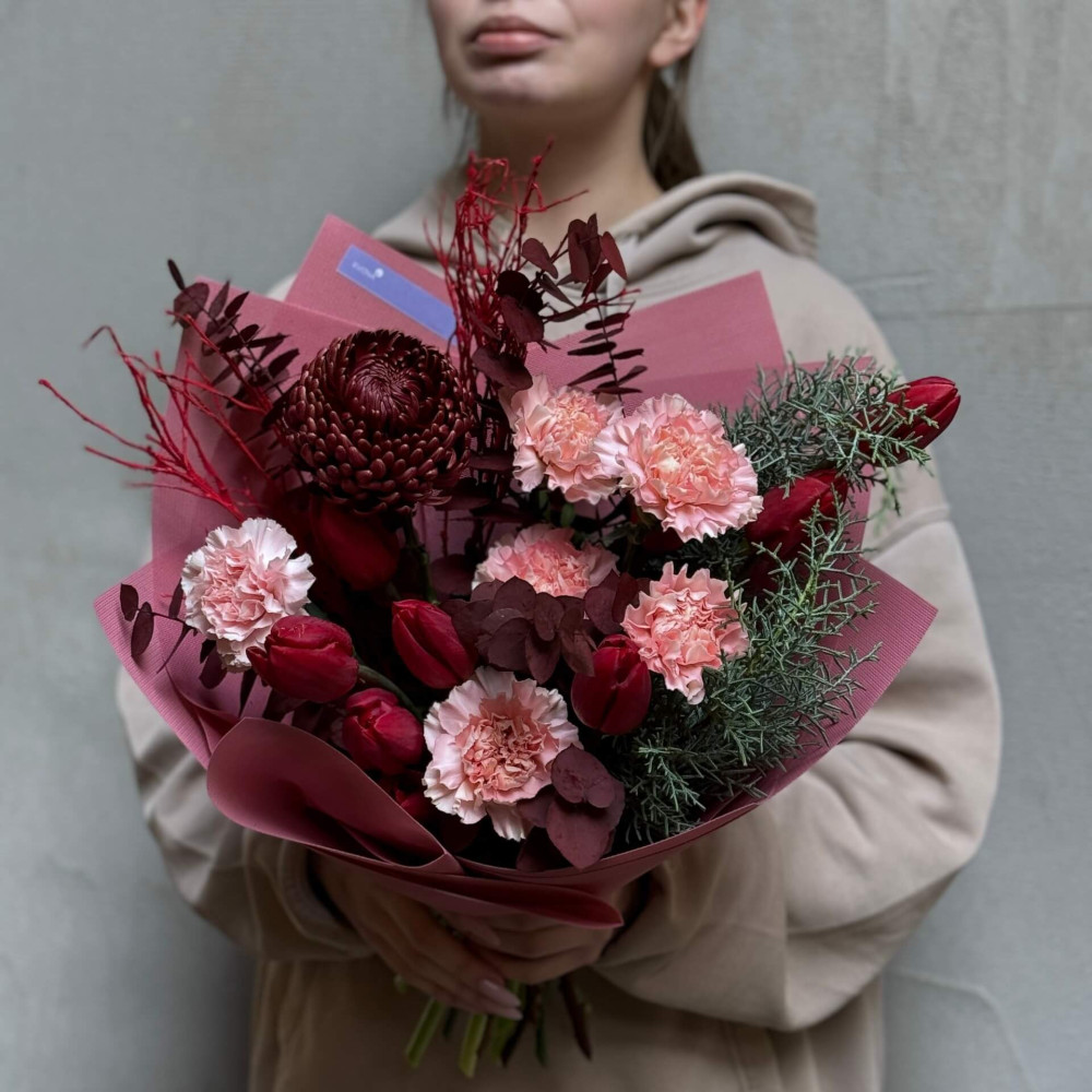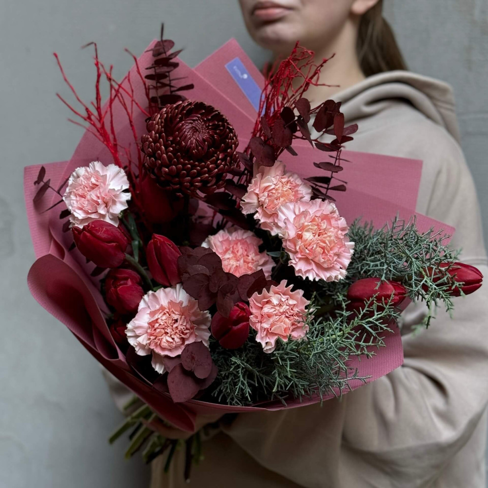 Квіти: Хризантема, Тюльпан, Діантус (Гвоздика), Евкаліпт, Чорничник, Кипарис