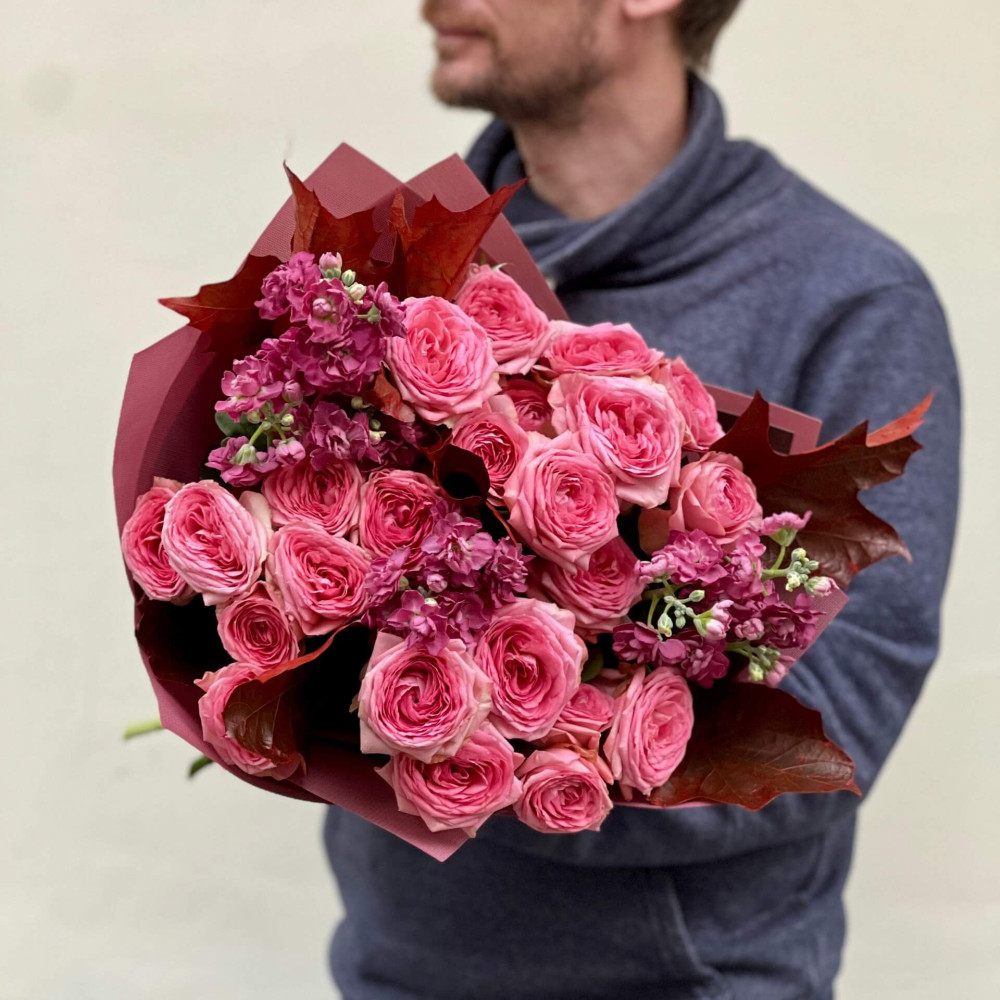 - Як замовити Сезонний яскравий букет з кущовою матіолою «Пунш з корицею»? ❯