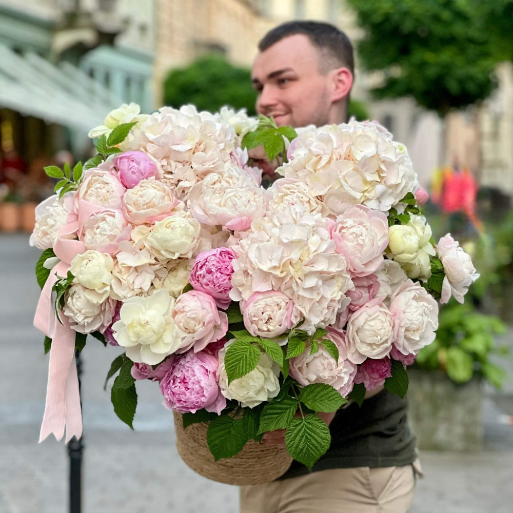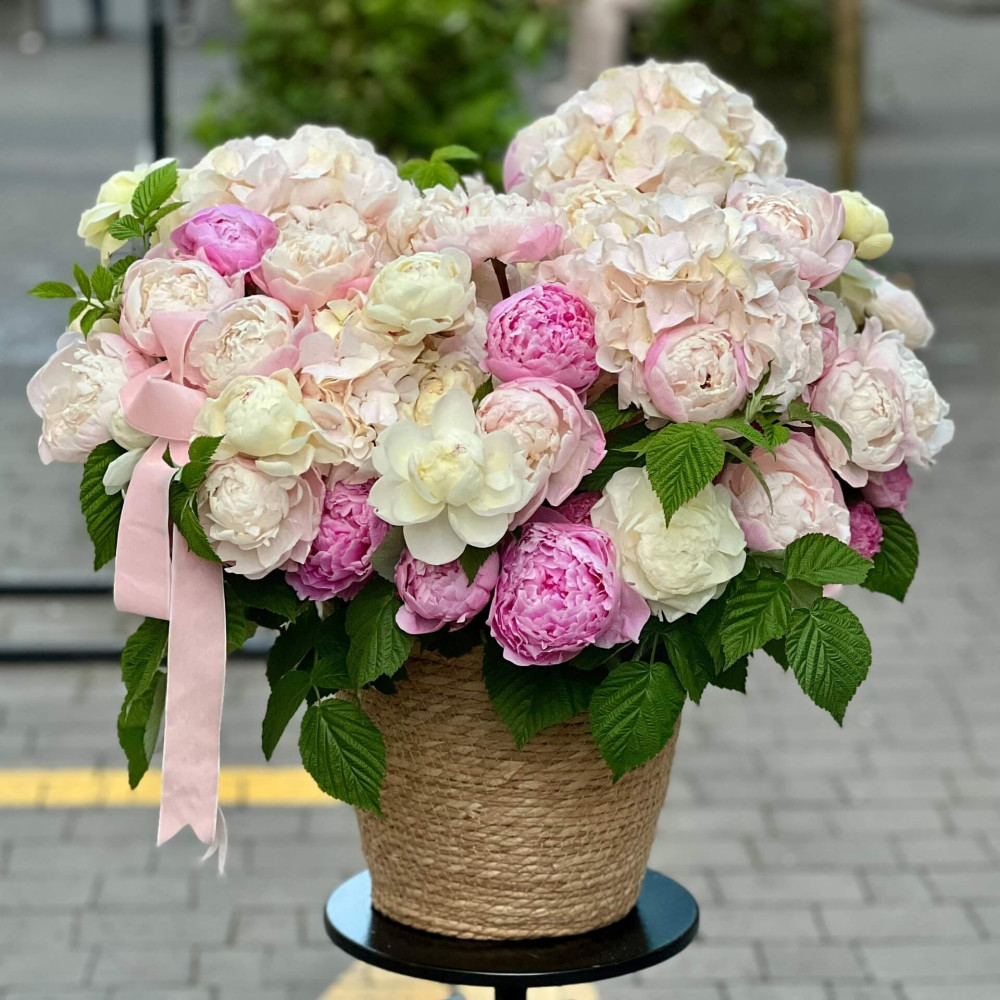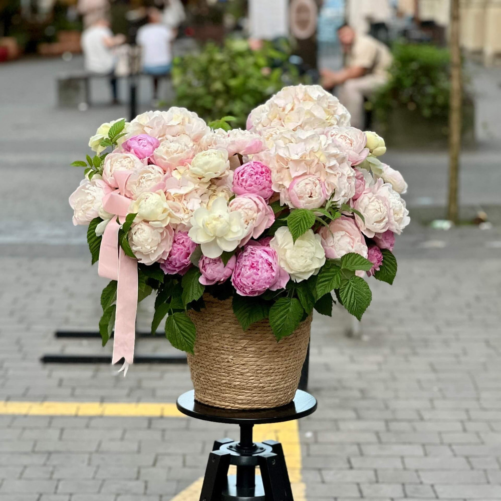 - Як замовити Шикарна композиція з півоніями та гортензіями «Розкіш почуттів»? ❯