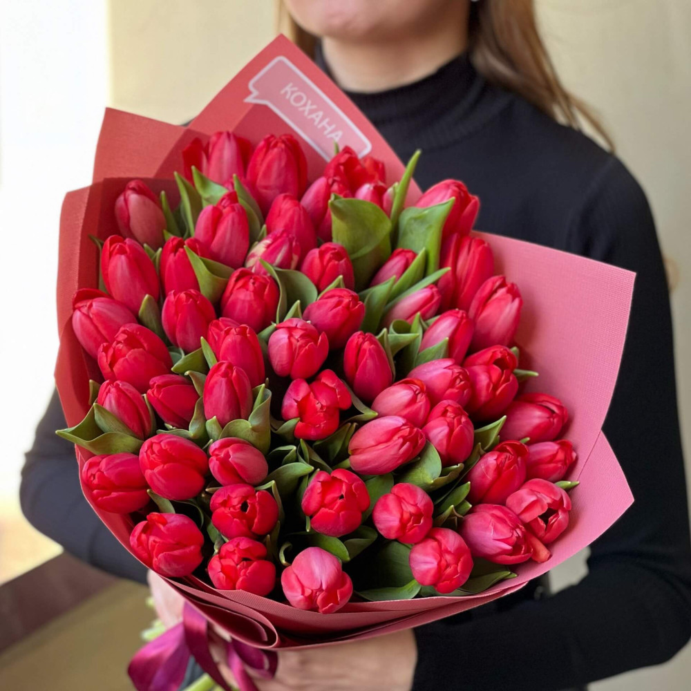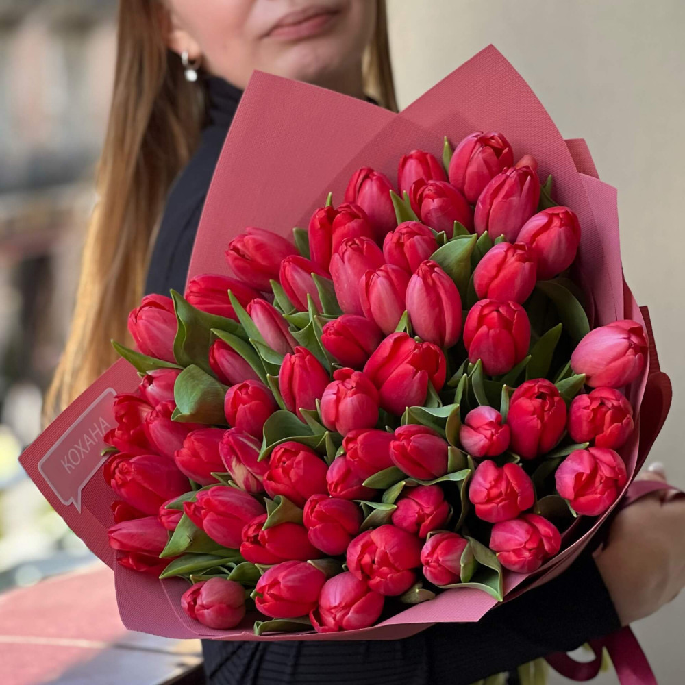 - Як замовити Соковитий букет з 51 червоного тюльпана «Солодкі поцілунки»? ❯