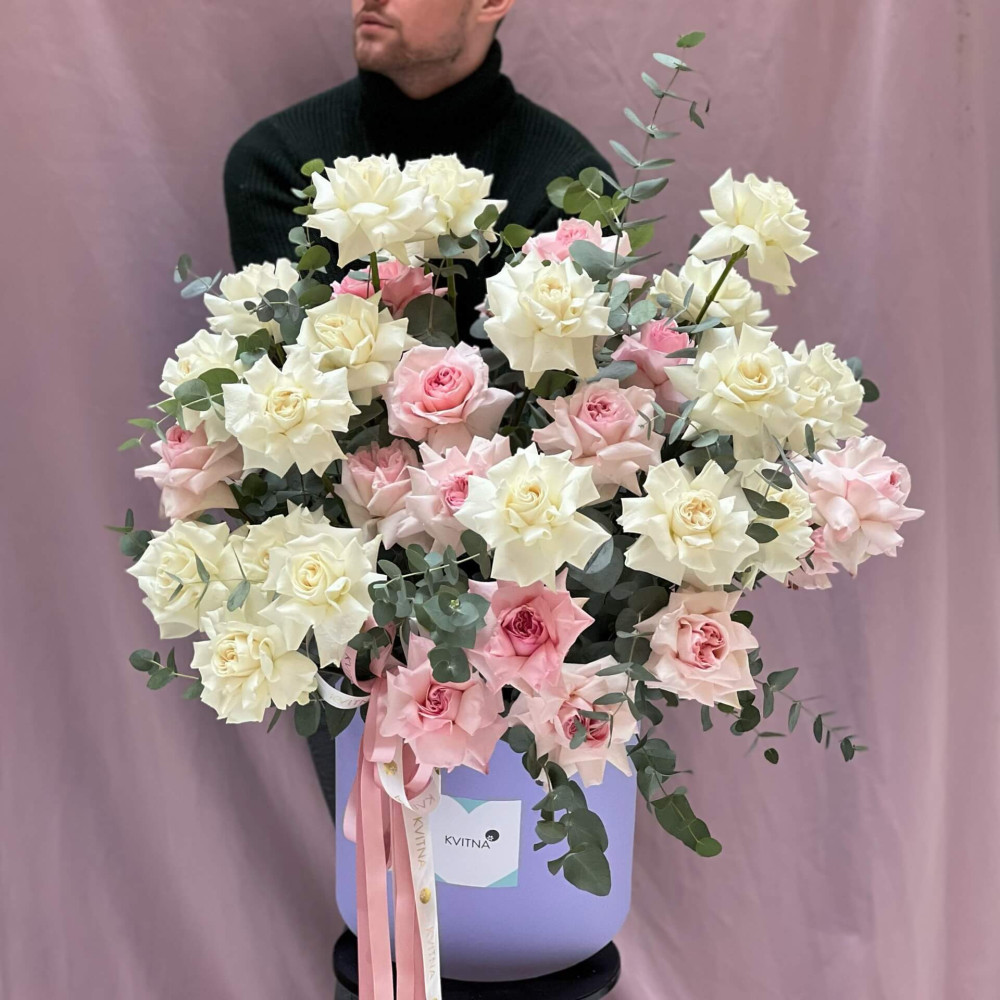 Квіти: Троянда піоновидна, Евкаліпт
