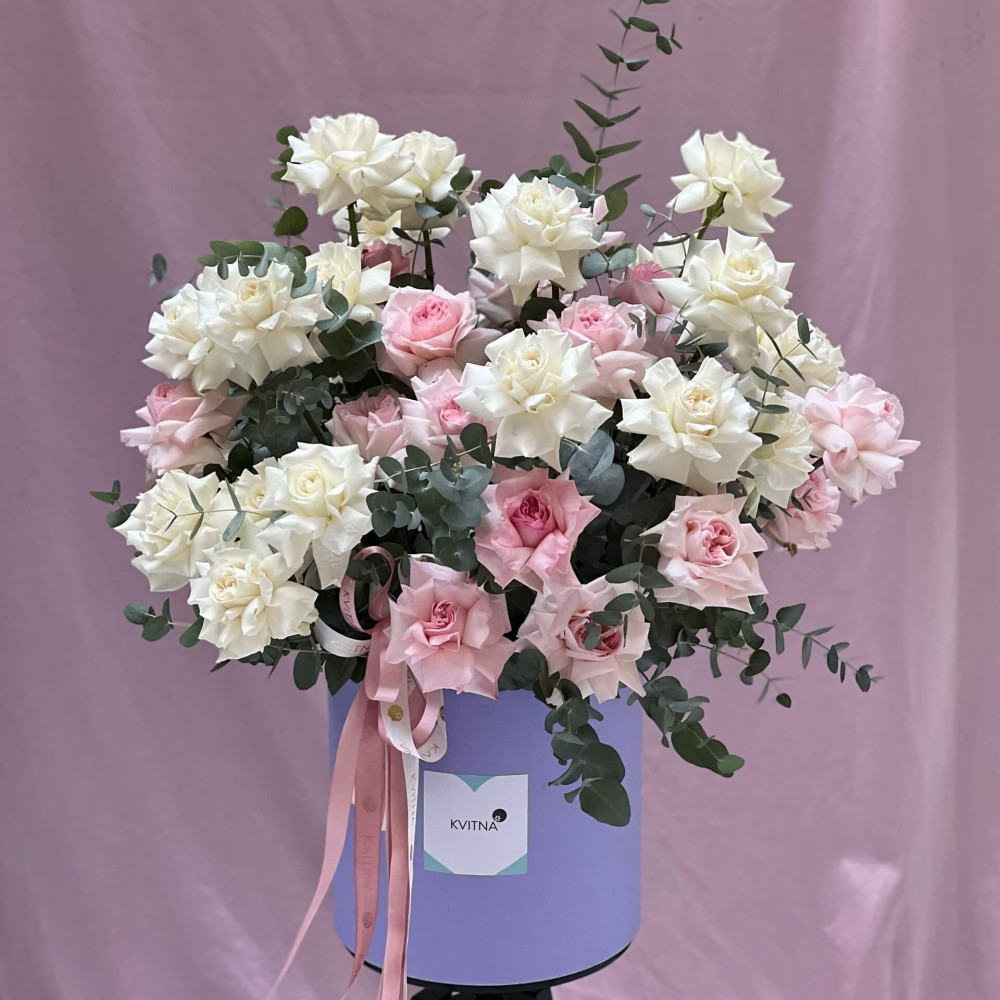 Нехай композиція (коробка, кошик, сніп) з квітами від Квітна тішить Вас якнайдовше!