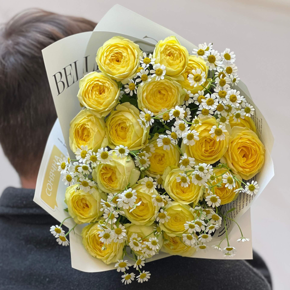 - Як замовити Сонячний букет з кущовою піоновидною трояндою Lemon Trendsetter «Лимонний флер»? ❯