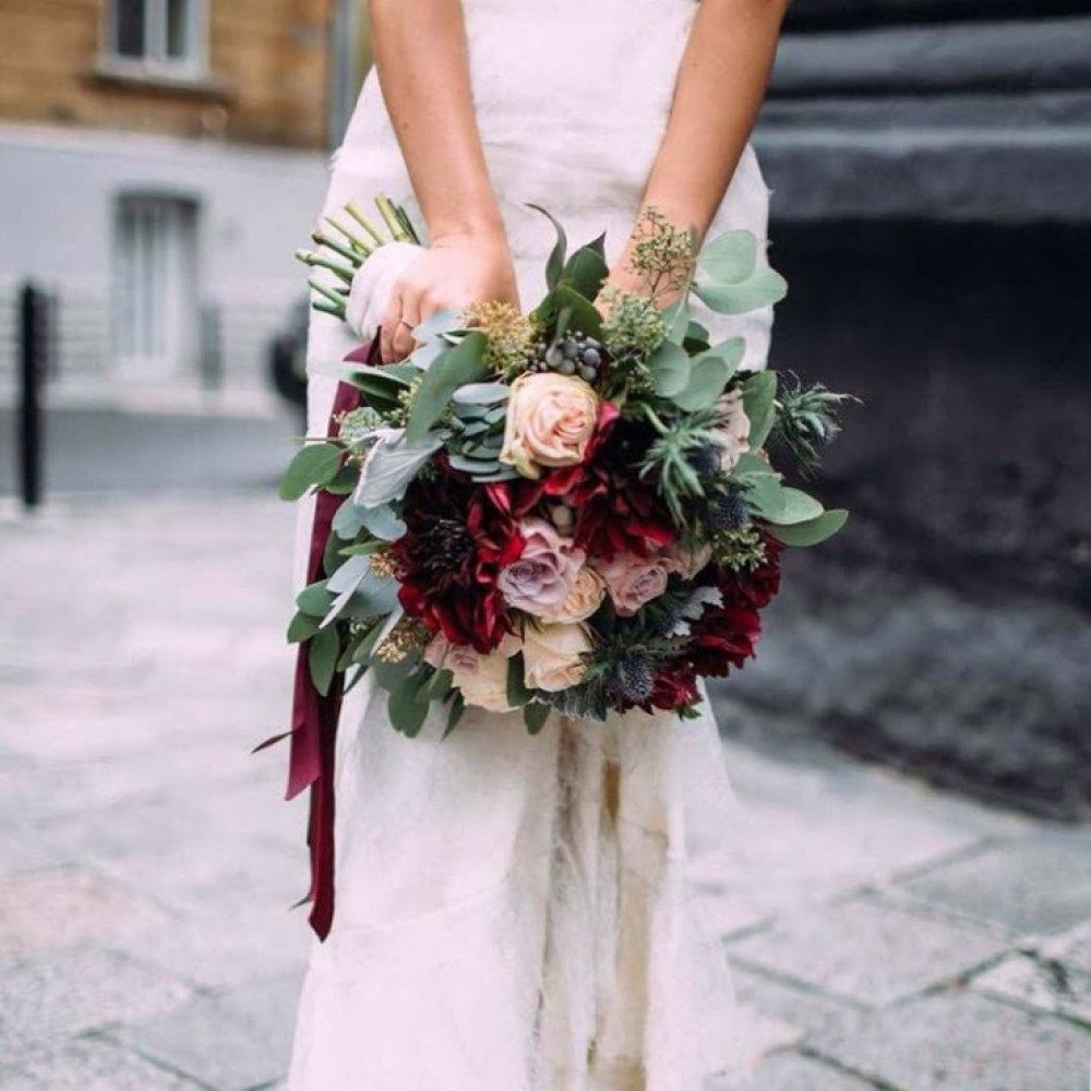 - Як замовити Стильний бордовий букет нареченої? ❯