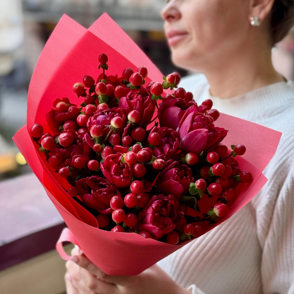 - Як замовити Стиглий букет із піоновидних тюльпанів «Серце весни»? ❯