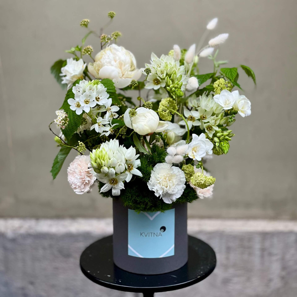 - Композиції з квітів від Kvitna (такі як коробка, кошик, сніп) зібрані у флористичній піні, просоченій водою, тому вони не потребують вази. Оскільки вода випаровується, потрібно підливати в піну по склянці прохолодної води щодня.