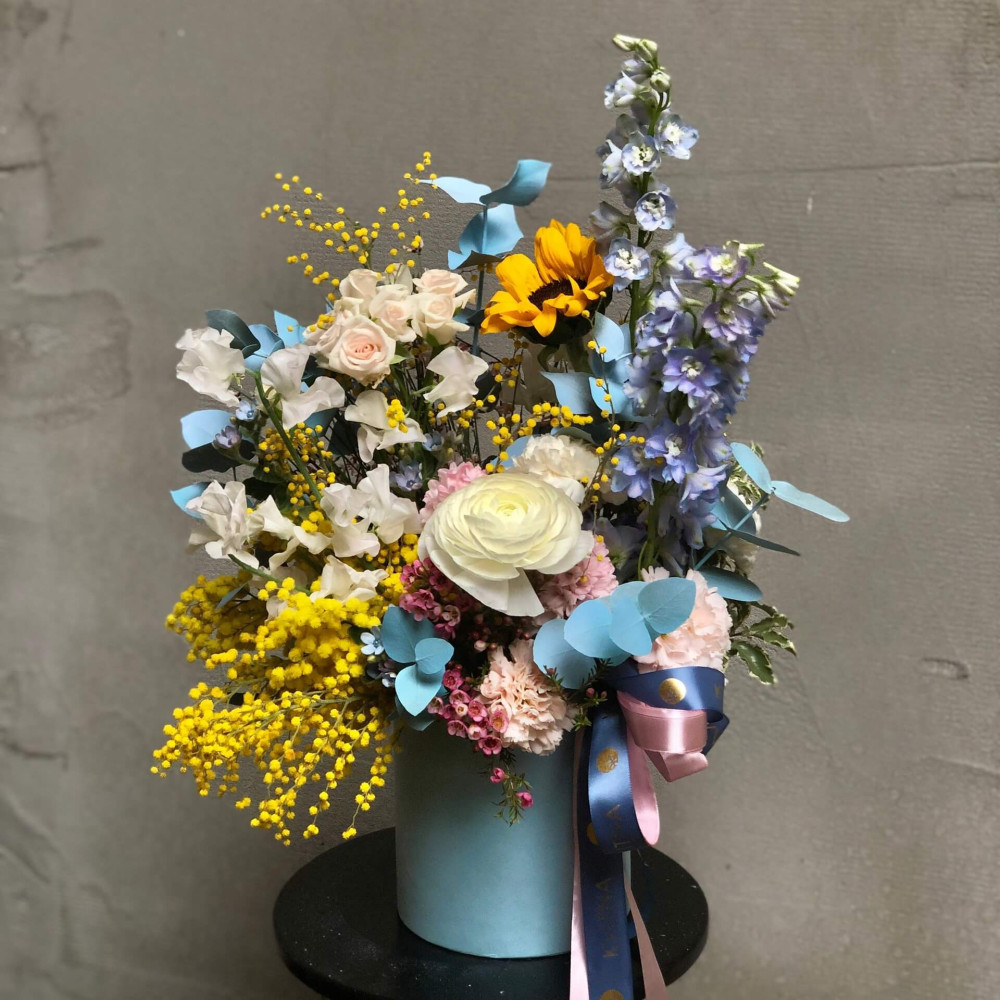Нехай композиція (коробка, кошик, сніп) з квітами від Квітна тішить Вас якнайдовше!