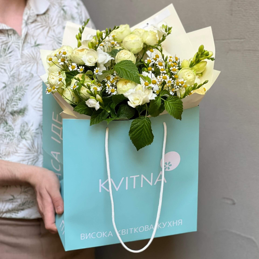 - Букети від Kvitna доставляються у фірмовому пакуванні, яке потрібно зняти при установці квітів у вазу. Не зрізайте стрічку, звʼязуючу букет, щоб зберегти його форму.