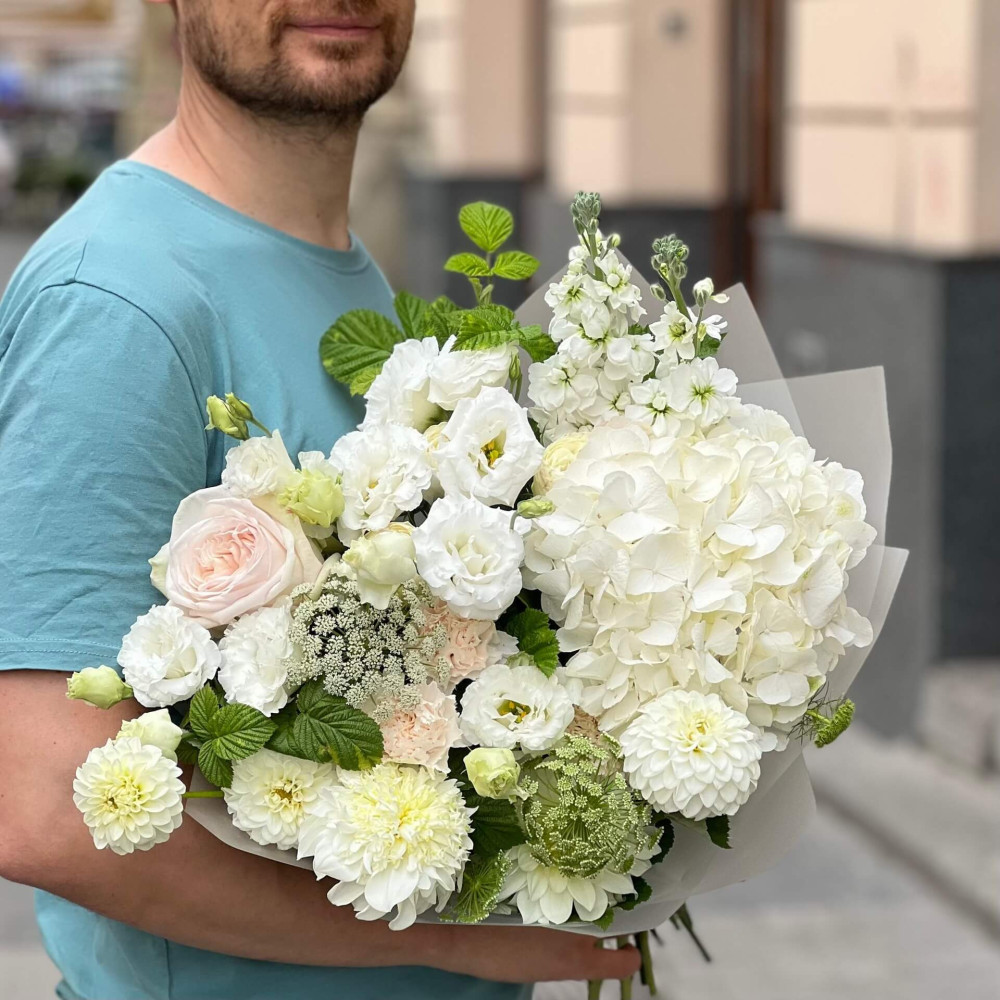 - Як замовити Світлий букет з гортензією «Улюблена перлинка»? ❯