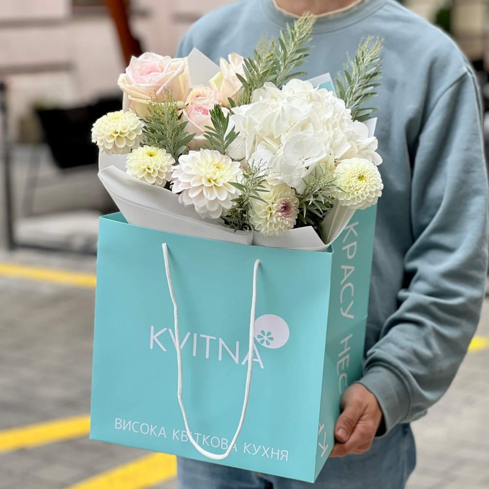 І це, до речі, зовсім не обов'язково плюси, це особливості, які потрібно розуміти. Тоді і вибір «де купити букет у Львові» зробити буде значно простіше.- Кожен букет Kvitna унікальний. Це означає, якщо Ви замовите у нас якийсь із букетів на сайті, то Ви не отримаєте точнісінько такий же. Деяких це бентежить, такі люди не хочуть «ризикувати», бажають «в точності, як на світлині». У «Квітна» кожен букет — це творчий пошук, це захоплення, злиття з квітами, образом одержувача і завданням. Так, ми можемо прийняти за вектор, зробити схожий букет, в тому ж стилі, кольоровій гамі, з тих самих квітів ... Але нам нудно робити за шаблоном. Адже букет, представлений на зображенні, робився для іншої людини, з іншого приводу, під інший настрій і натхнення. У Вас буде все по-іншому.