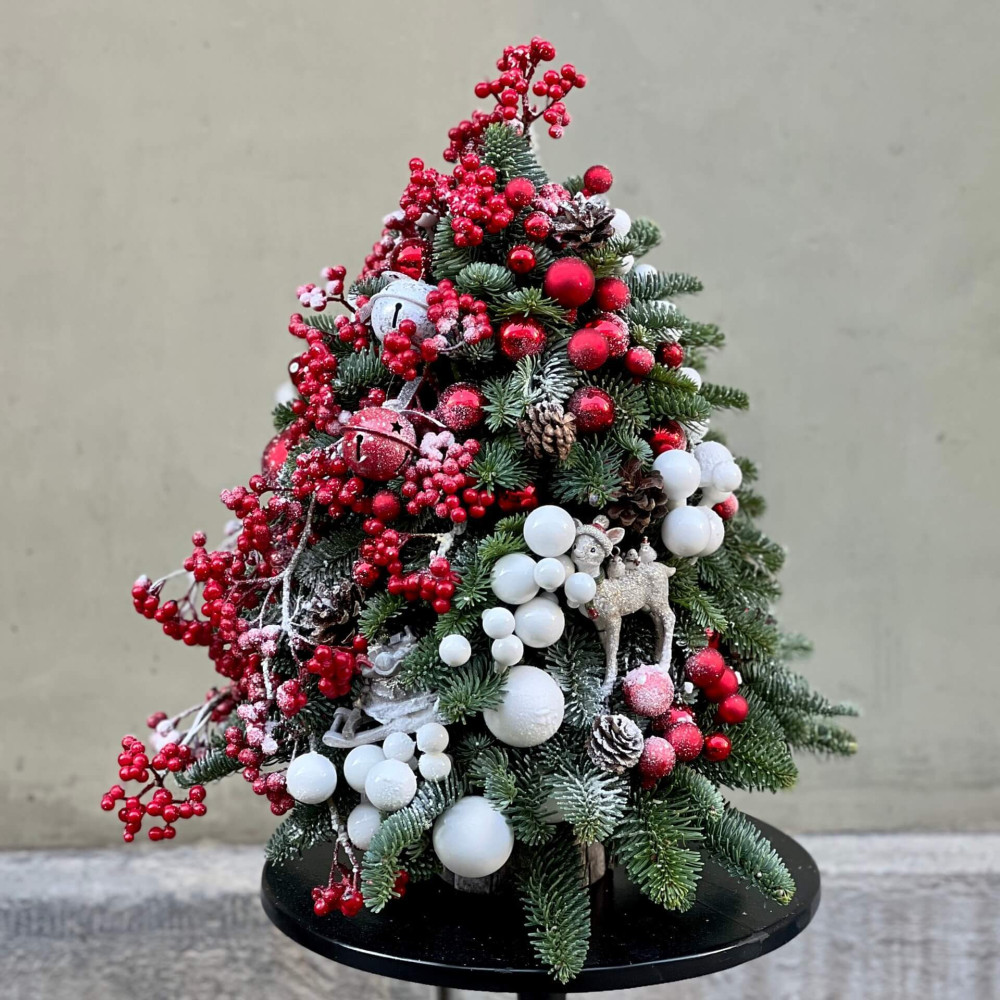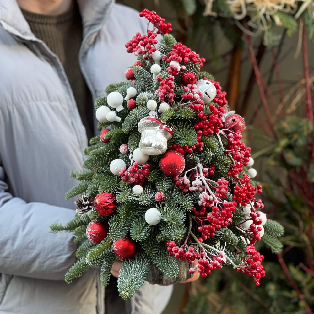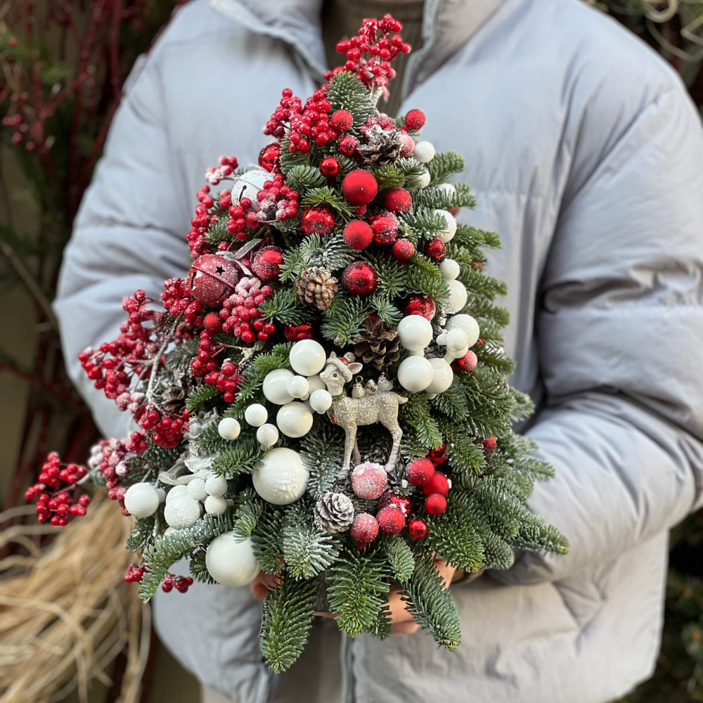 - Як замовити Святкова ялиночка із червоно-білим декором «Лісове Різдво»? ❯