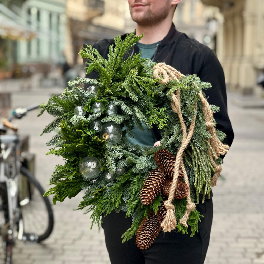 - Як замовити Святковий вінок із хвої у екостилі «Зелений ліс»? ❯