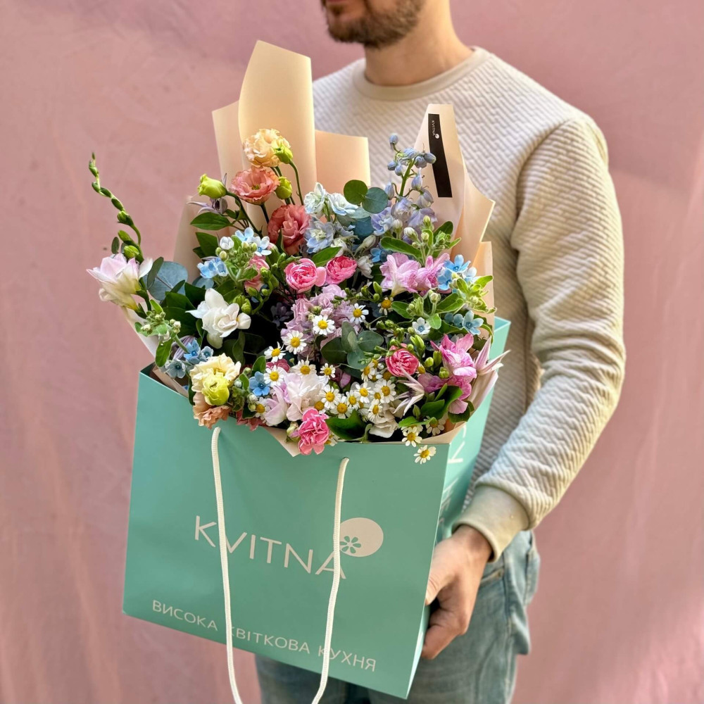 І це, до речі, зовсім не обов'язково плюси, це особливості, які потрібно розуміти. Тоді і вибір «де купити букет у Львові» зробити буде значно простіше.- Кожен букет Kvitna унікальний. Це означає, якщо Ви замовите у нас якийсь із букетів на сайті, то Ви не отримаєте точнісінько такий же. Деяких це бентежить, такі люди не хочуть «ризикувати», бажають «в точності, як на світлині». У «Квітна» кожен букет — це творчий пошук, це захоплення, злиття з квітами, образом одержувача і завданням. Так, ми можемо прийняти за вектор, зробити схожий букет, в тому ж стилі, кольоровій гамі, з тих самих квітів ... Але нам нудно робити за шаблоном. Адже букет, представлений на зображенні, робився для іншої людини, з іншого приводу, під інший настрій і натхнення. У Вас буде все по-іншому.