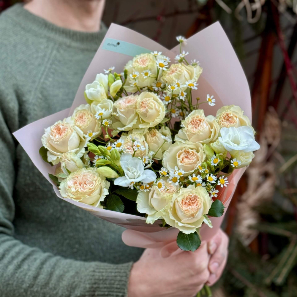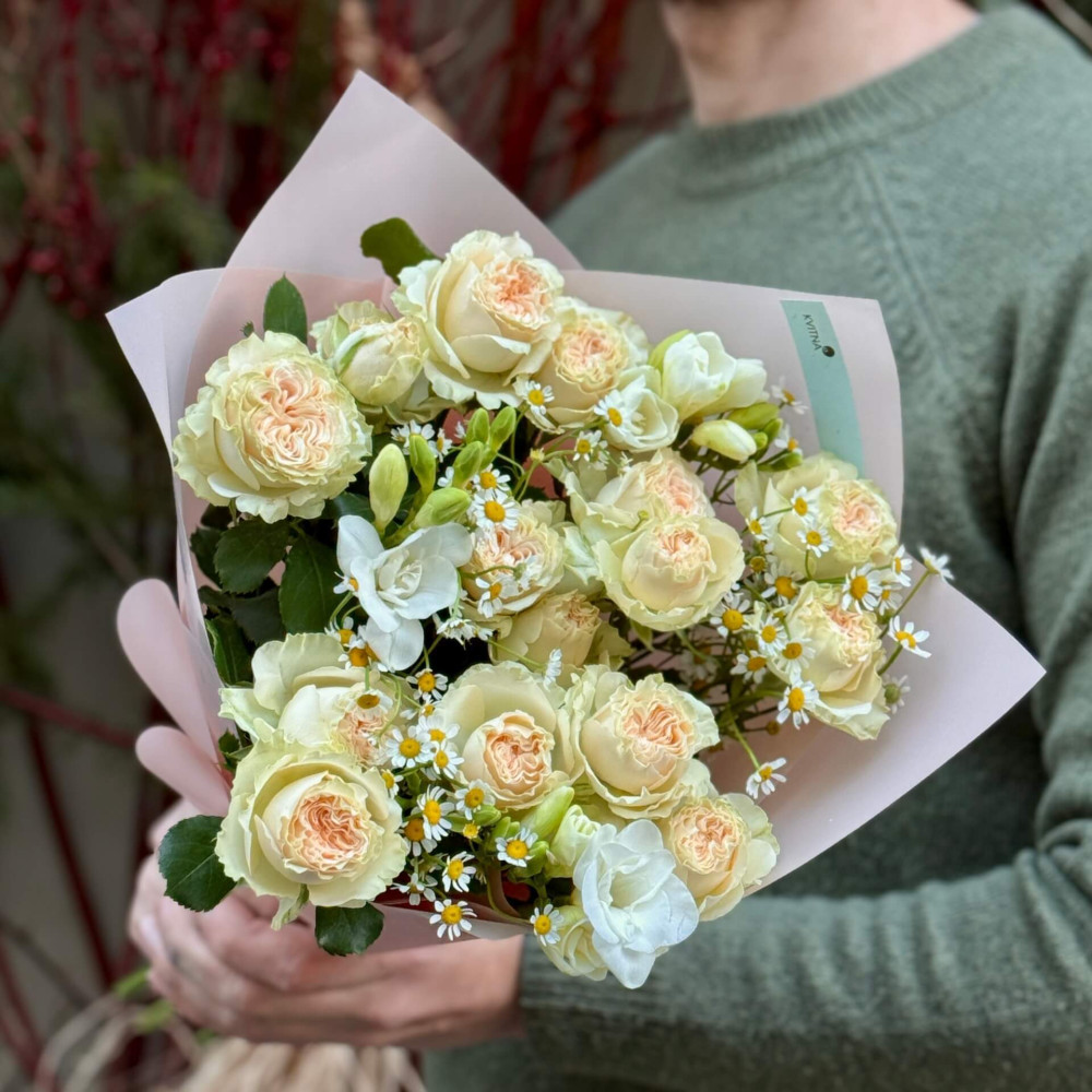 - Як замовити Тендітний букет з кущовою трояндою «Милий привіт»? ❯