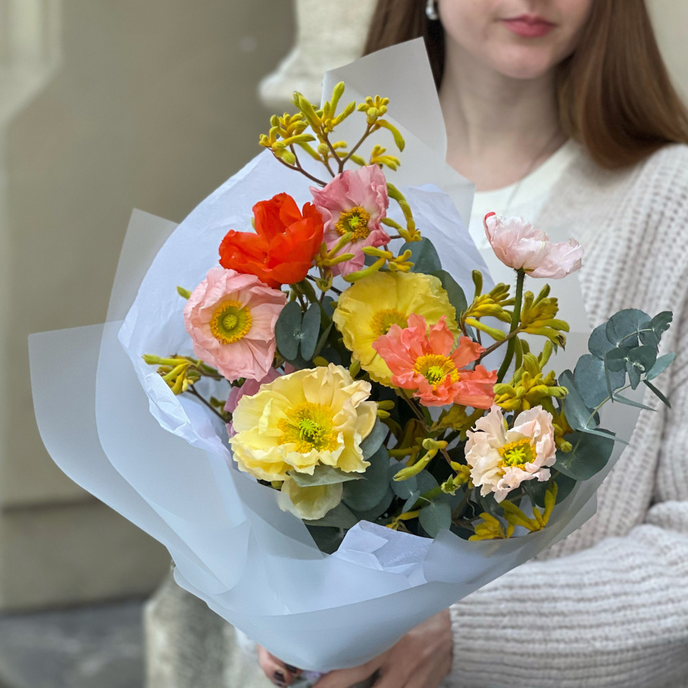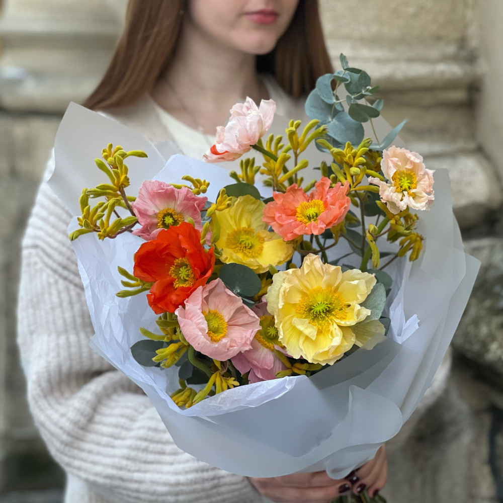 - Як замовити Тендітний букет з маків «Шовковий дотик»? ❯