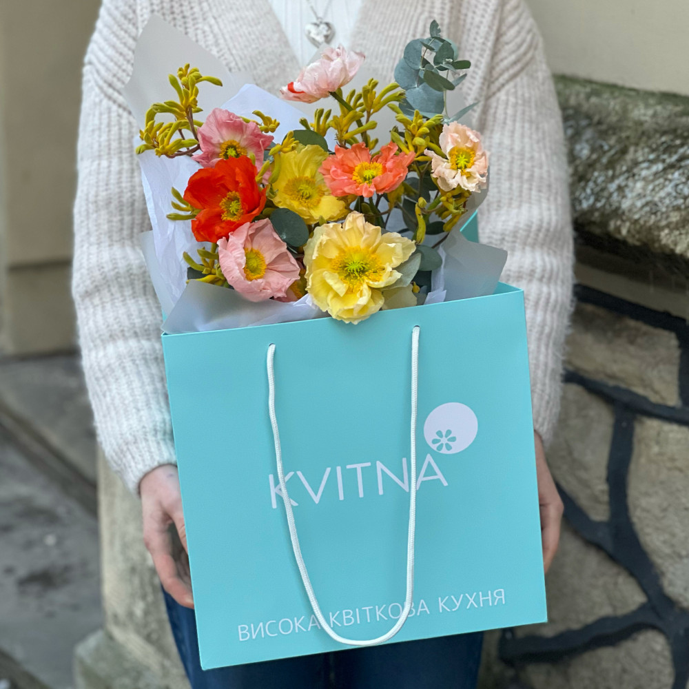- Букети від Kvitna доставляються у фірмовому пакуванні, яке потрібно зняти при установці квітів у вазу. Не зрізайте стрічку, звʼязуючу букет, щоб зберегти його форму.