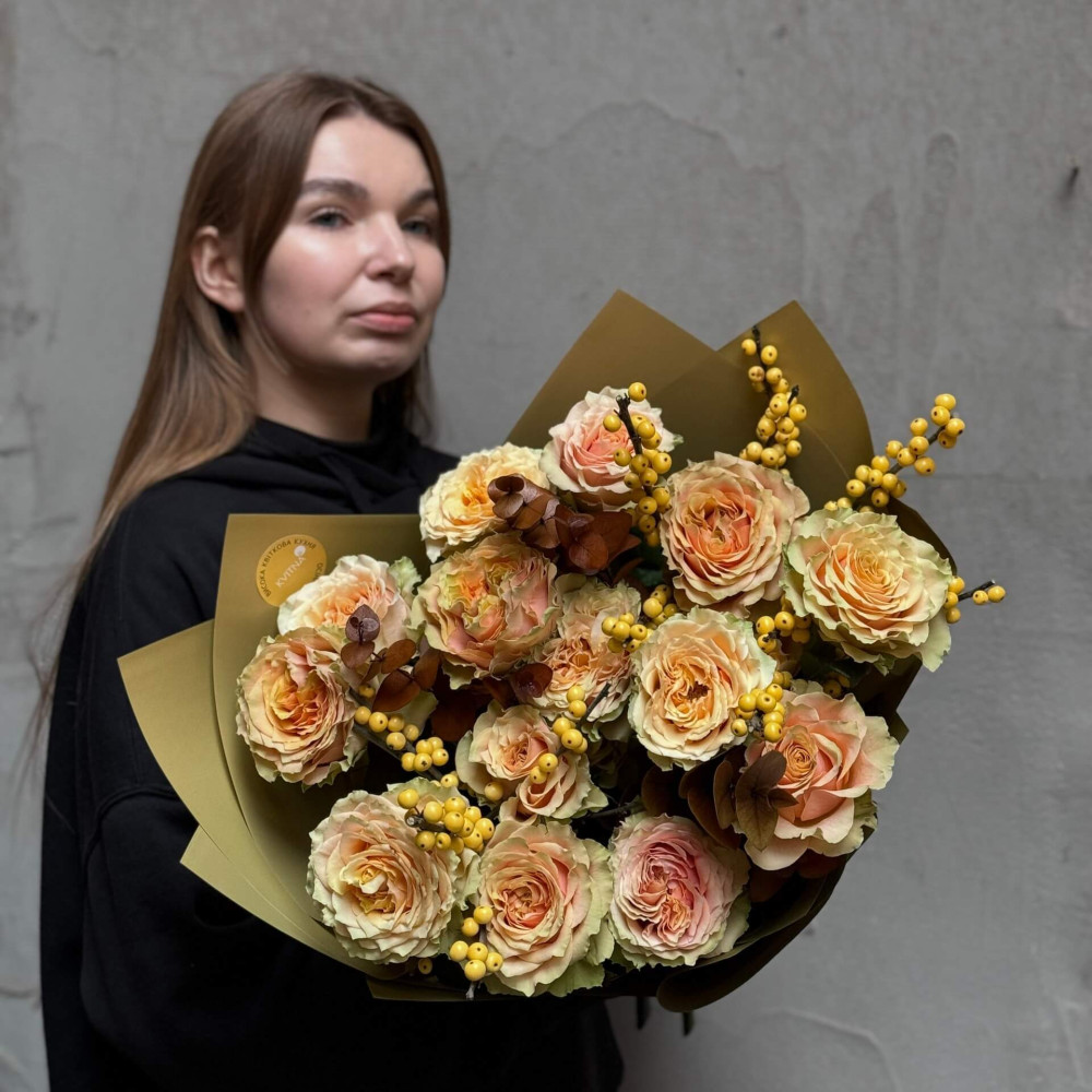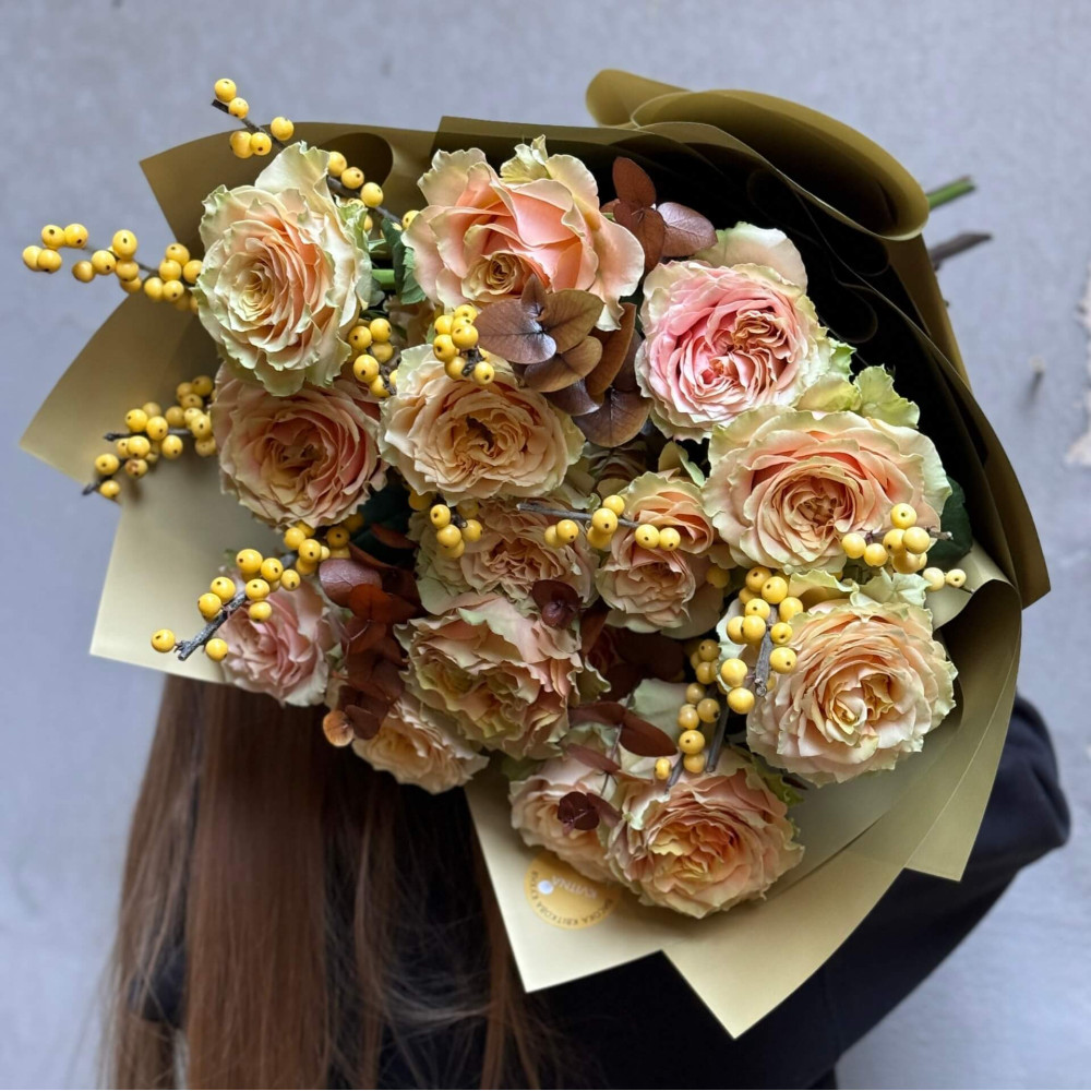 - Як замовити Теплий букет з піоновидною трояндою Caramel Macchiato «Карамельна насолода»? ❯