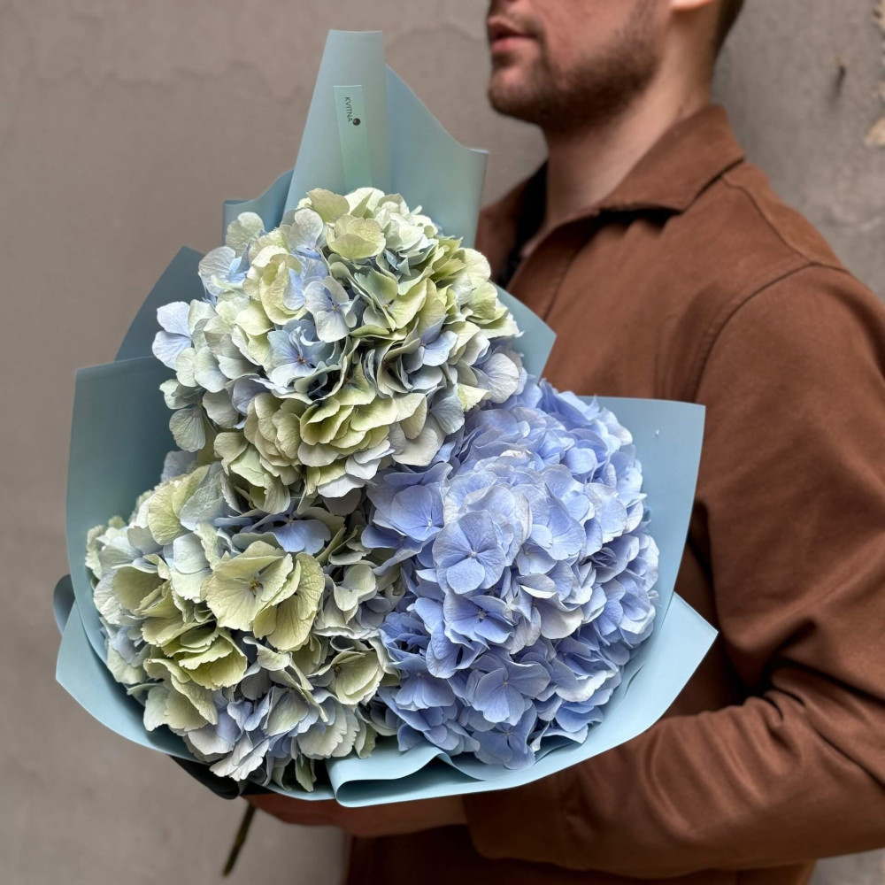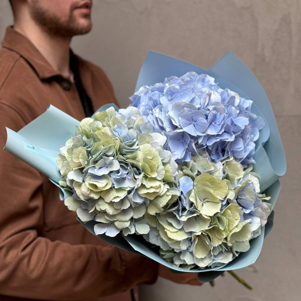 - Як замовити Три небесні гортензії у букеті «Легка Надія»? ❯