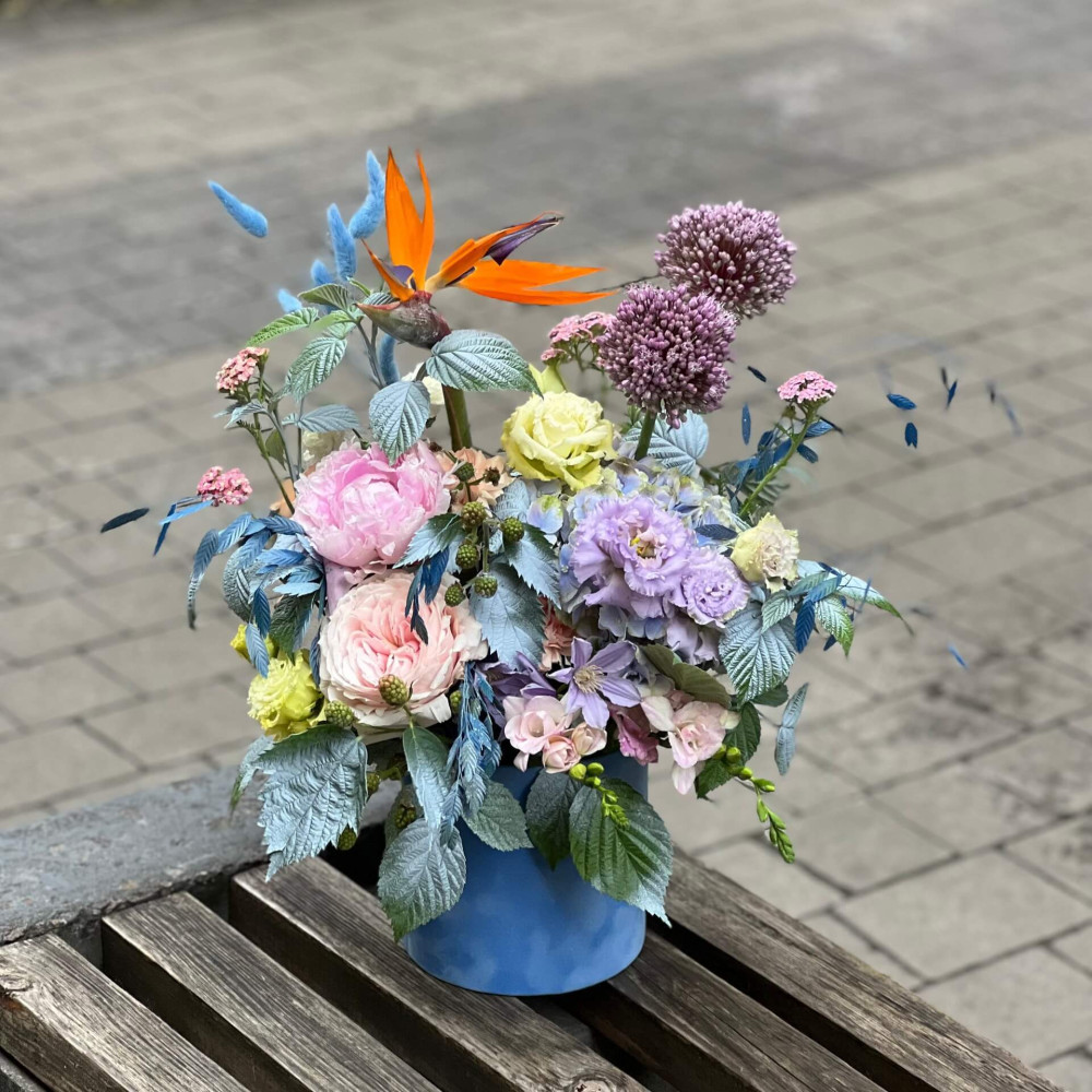 Квіти: Фрезія, Діантус (Гвоздика), Рубус, Троянда піоновидна, Гортензія, Ахілея, Еустома, Стреліція, Часник, Хасмантіум