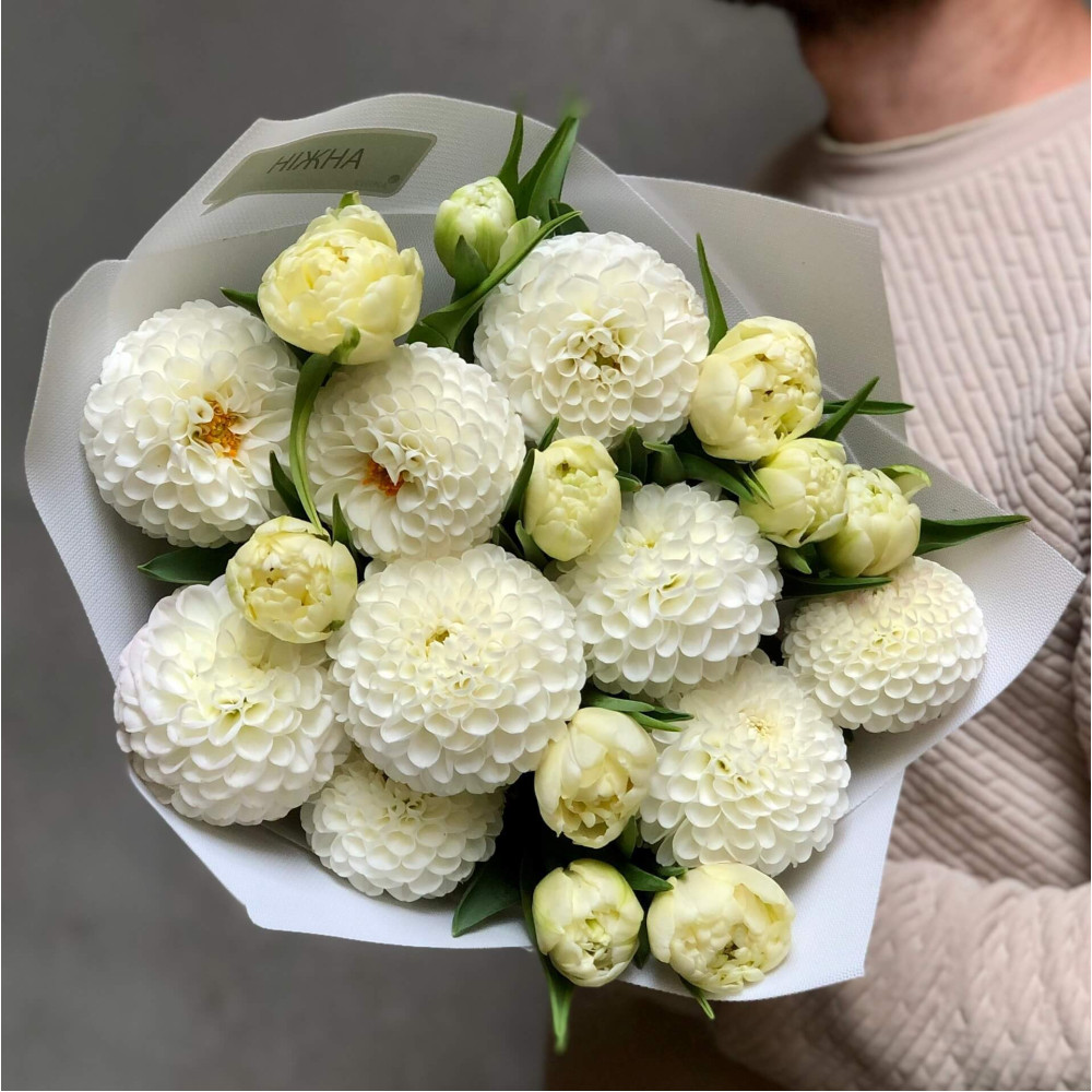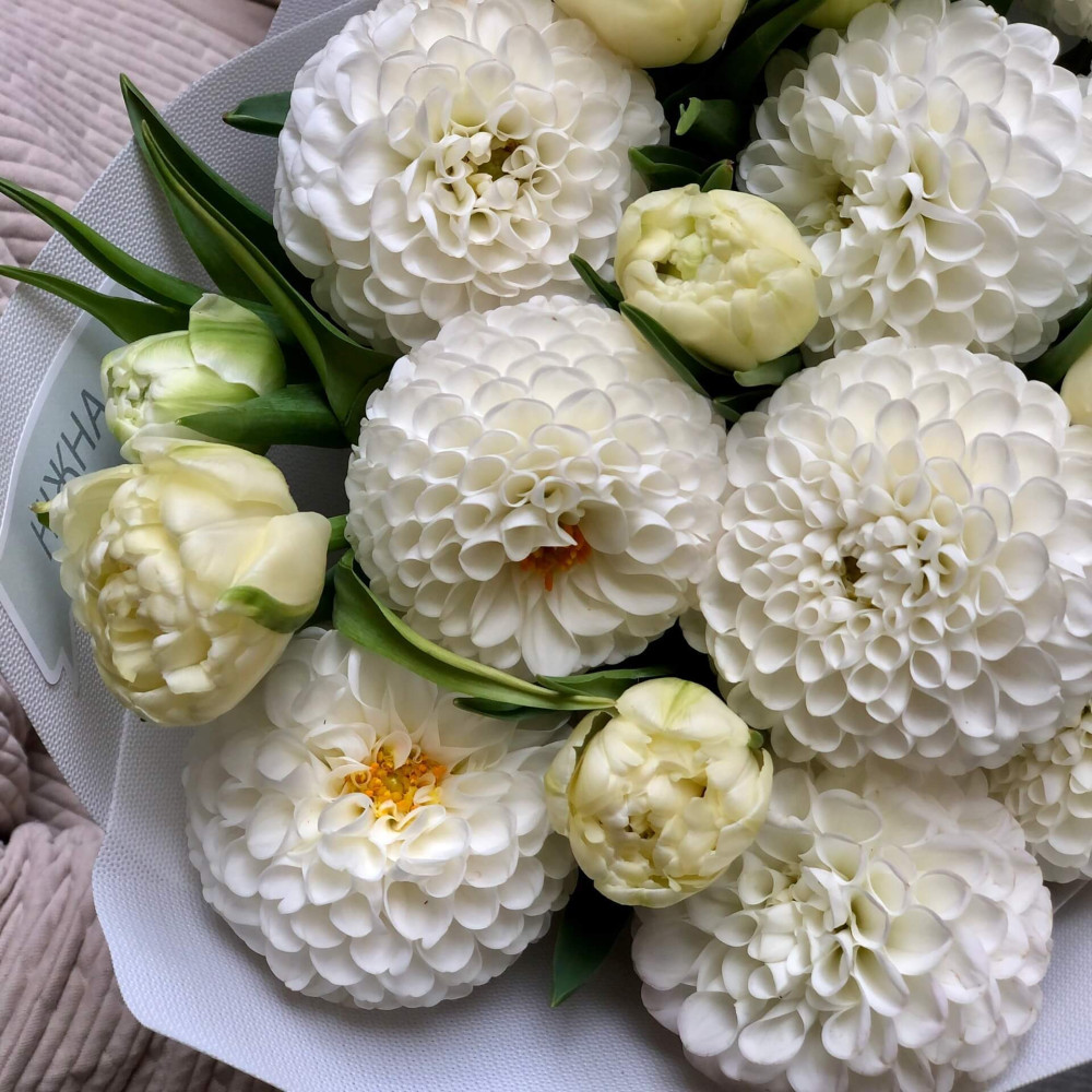 - Як замовити Цікавий букет із тюльпанів та жоржин «Весняна осінь»? ❯