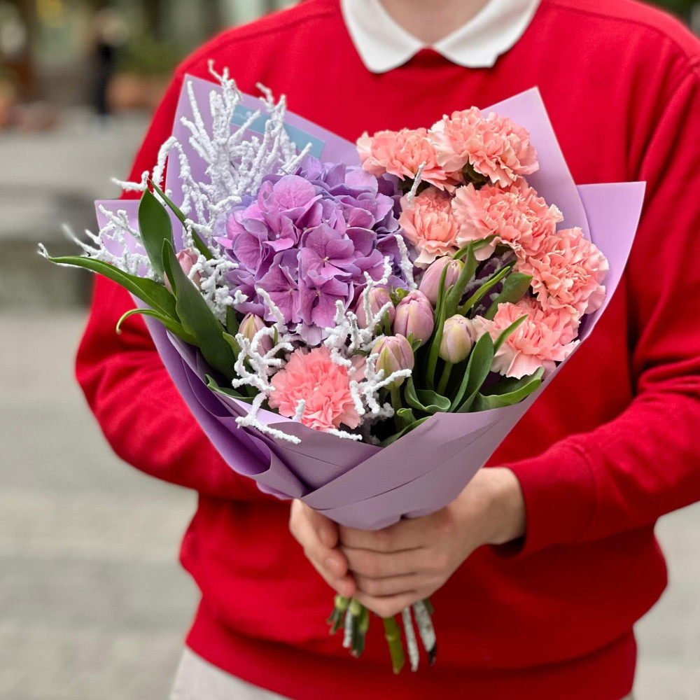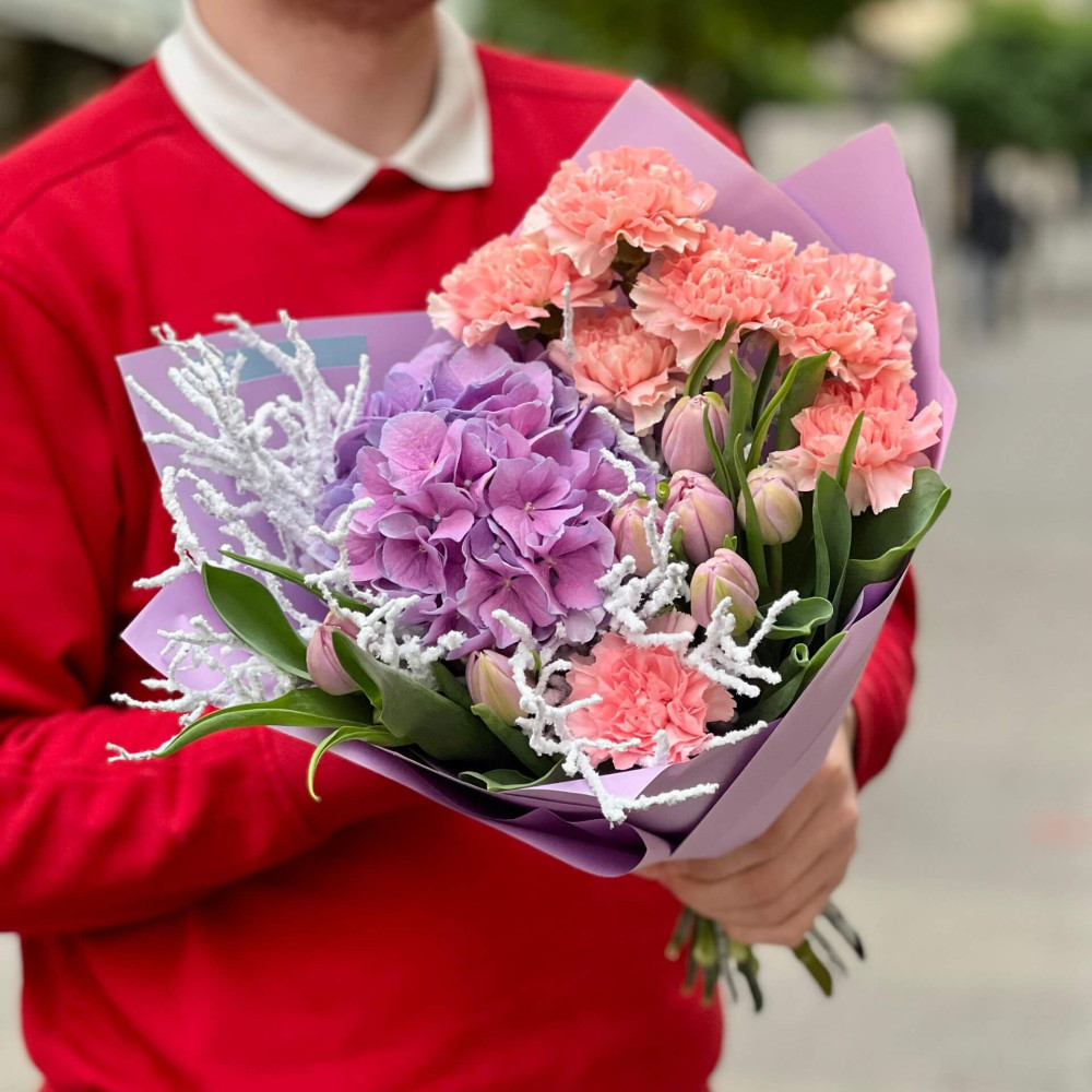 - Як замовити Цікавий букет з гортензією «Зимовий світанок»? ❯