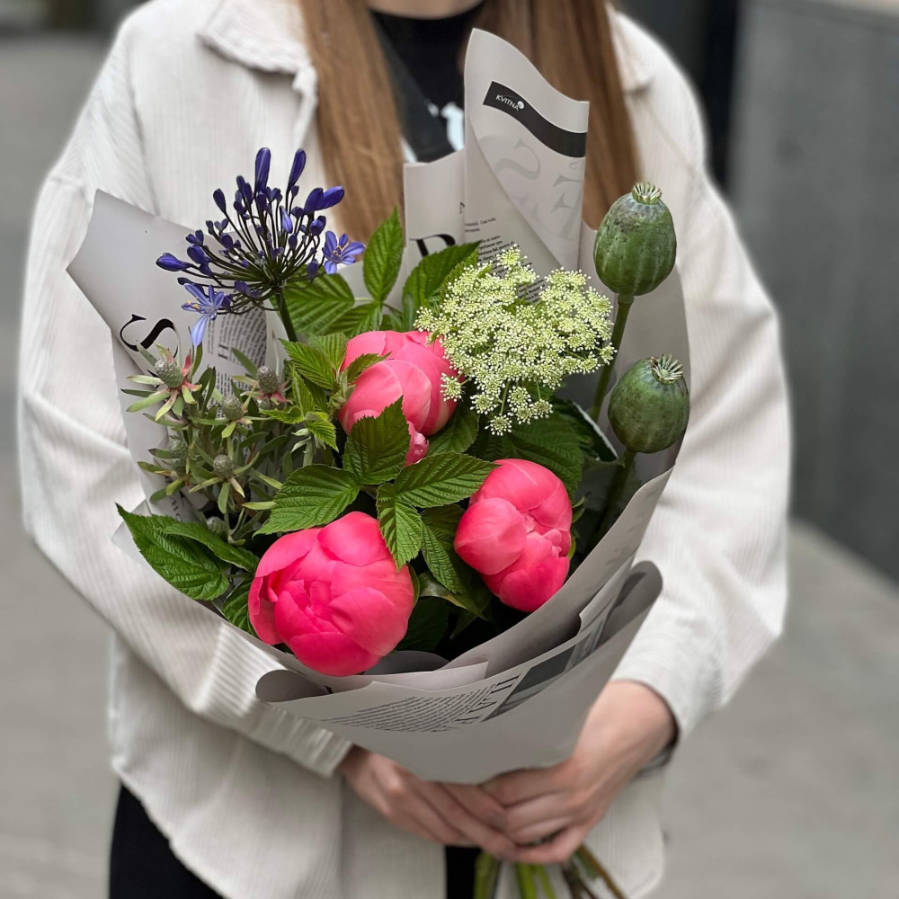 - Як замовити Цікавий букет з півоніями «Літній вечір»? ❯