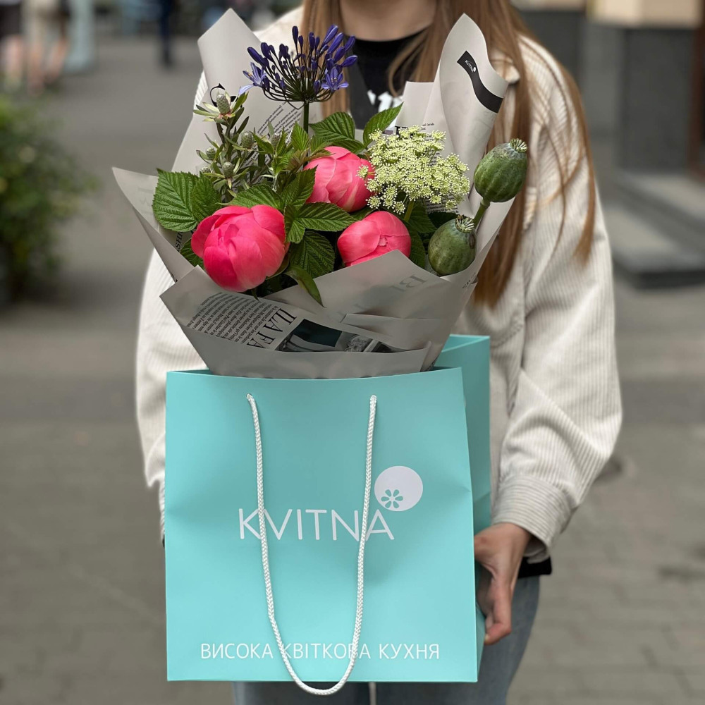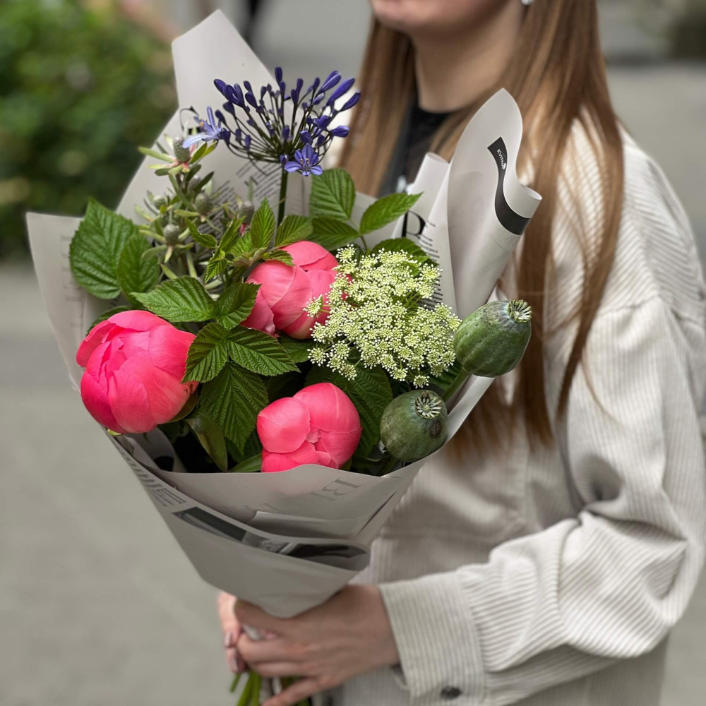 Квіти: Агапантус, Папавер (Мак), Півонія, Аммі, Леукадендрон, Малина (листя)
