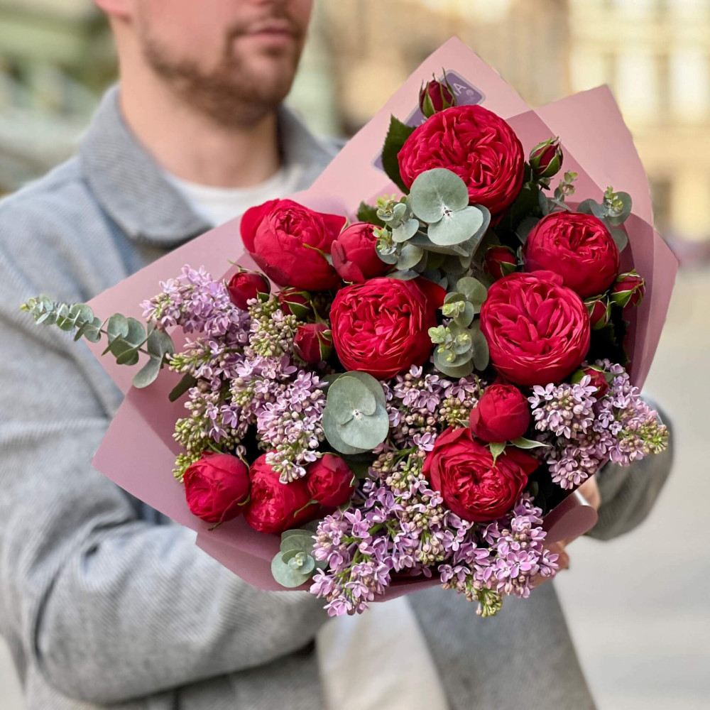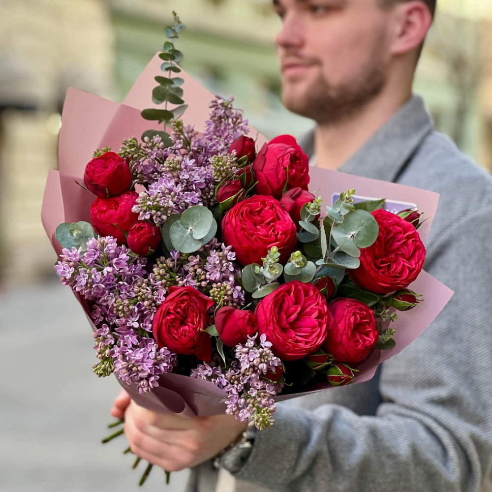 - Як замовити Цікавий букет з трояндою Red Piano та бузком «Вечірні чари»? ❯