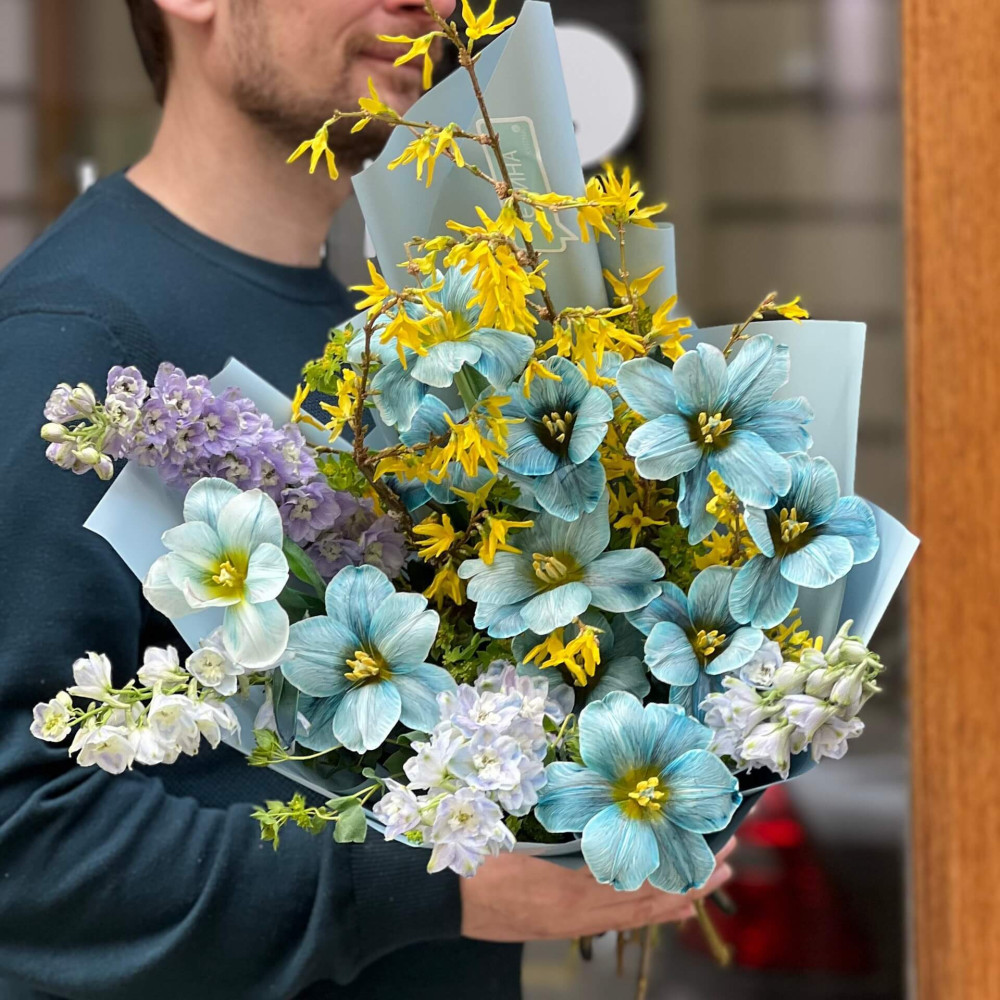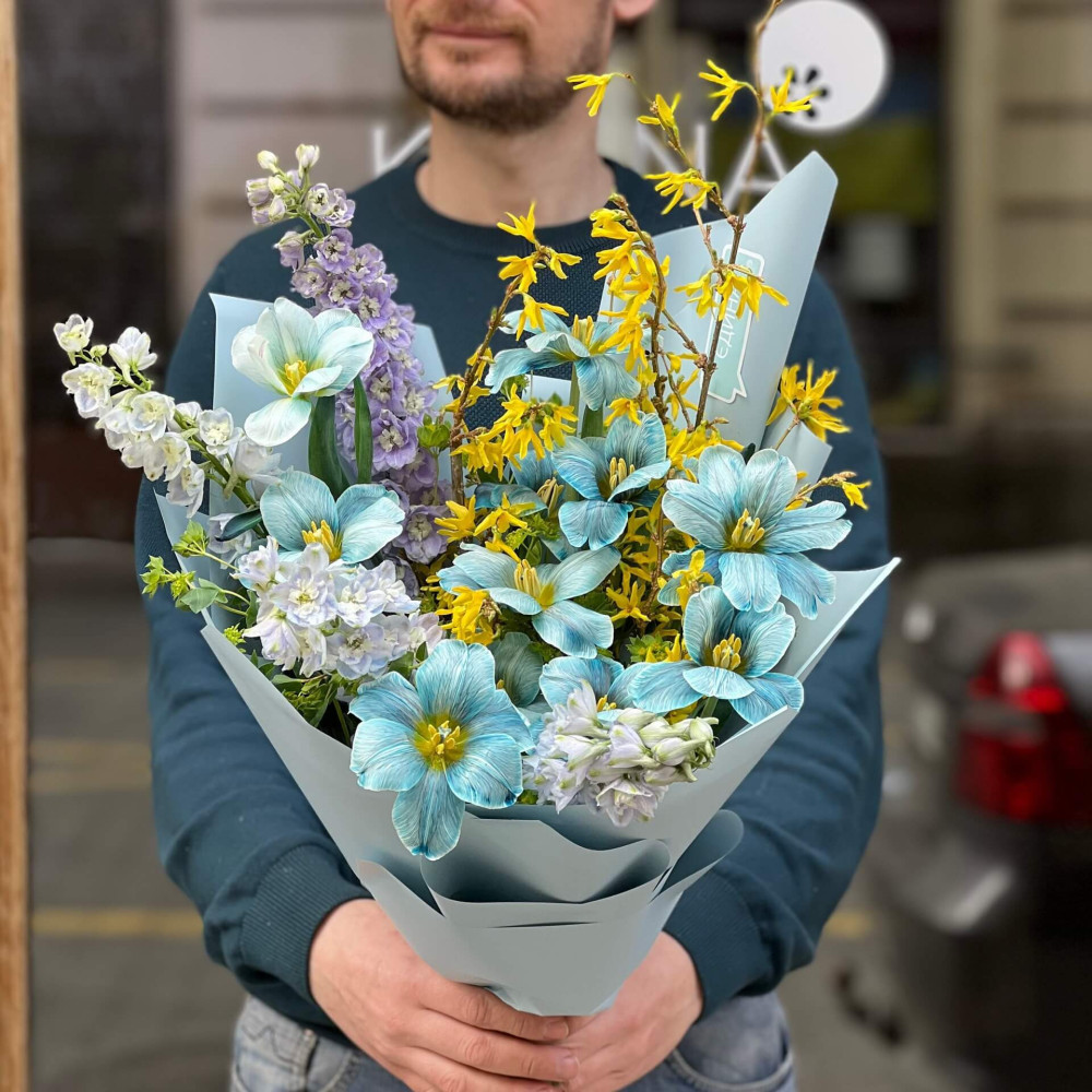 - Як замовити Цікавий букет з весняними тюльпанами «Блакитноока Галюся»? ❯