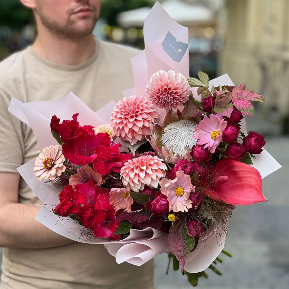 І це, до речі, зовсім не обов'язково плюси, це особливості, які потрібно розуміти. Тоді і вибір «де купити букет у Львові» зробити буде значно простіше.- Кожен букет Kvitna унікальний. Це означає, якщо Ви замовите у нас якийсь із букетів на сайті, то Ви не отримаєте точнісінько такий же. Деяких це бентежить, такі люди не хочуть «ризикувати», бажають «в точності, як на світлині». У «Квітна» кожен букет — це творчий пошук, це захоплення, злиття з квітами, образом одержувача і завданням. Так, ми можемо прийняти за вектор, зробити схожий букет, в тому ж стилі, кольоровій гамі, з тих самих квітів ... Але нам нудно робити за шаблоном. Адже букет, представлений на зображенні, робився для іншої людини, з іншого приводу, під інший настрій і натхнення. У Вас буде все по-іншому.
