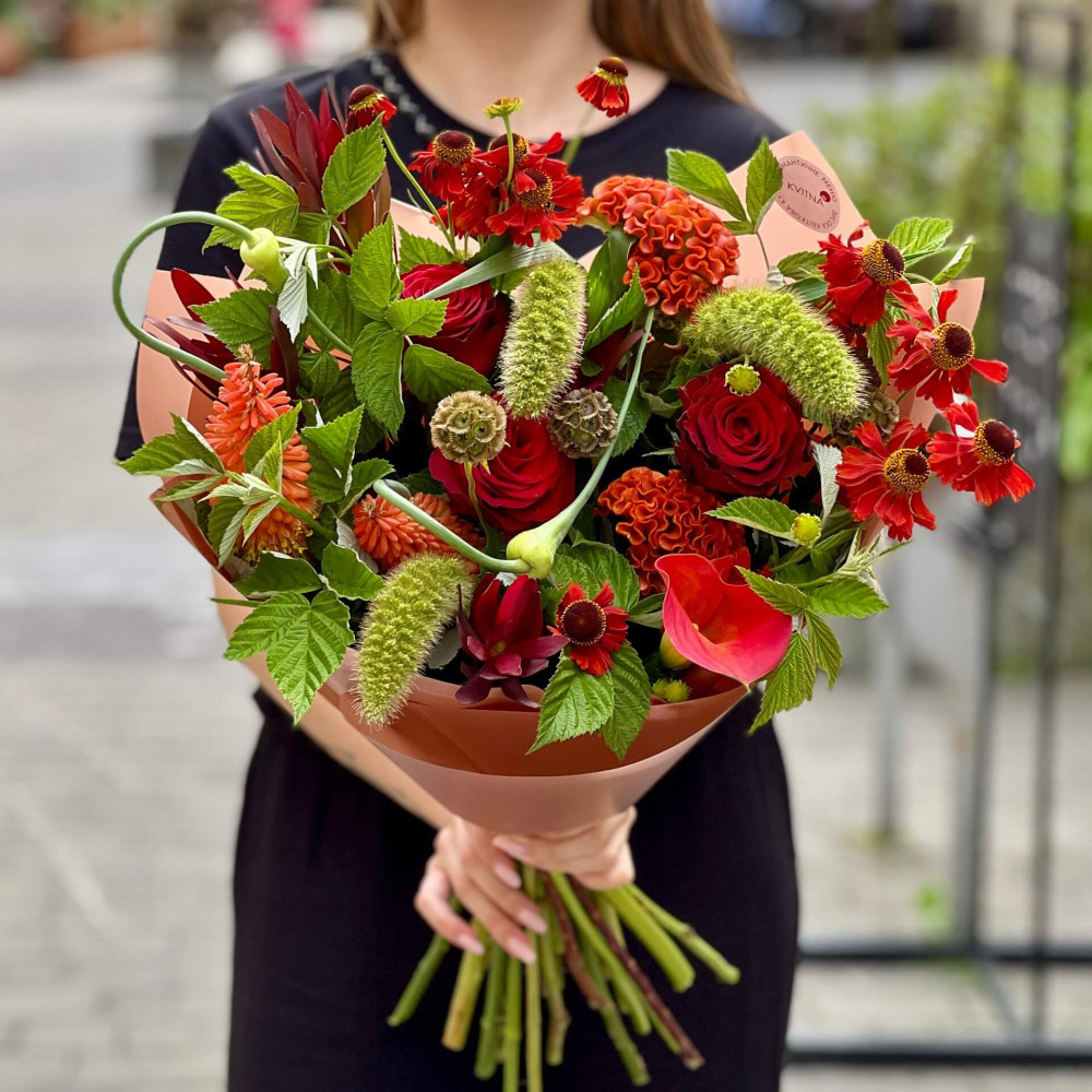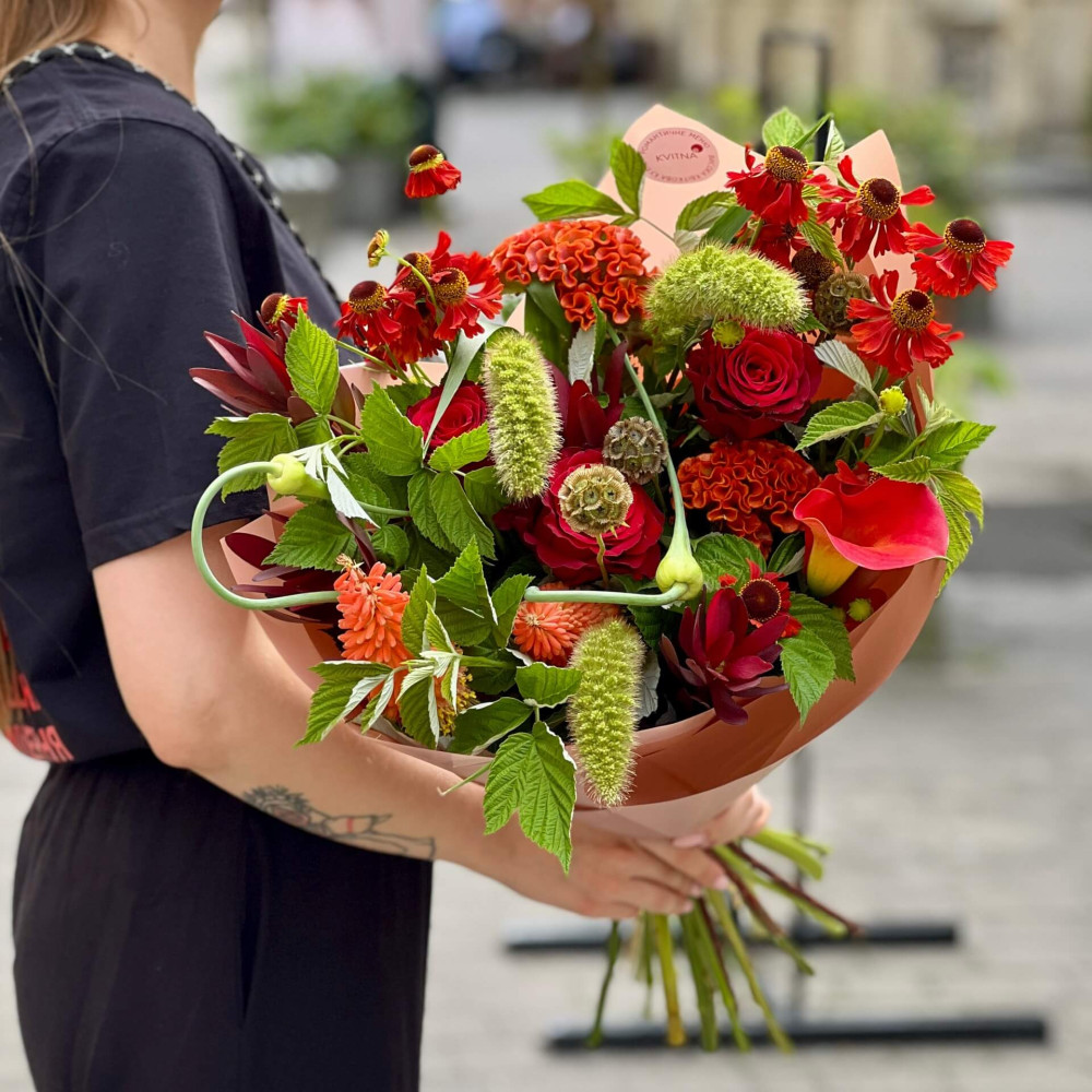 І це, до речі, зовсім не обов'язково плюси, це особливості, які потрібно розуміти. Тоді і вибір «де купити букет у Львові» зробити буде значно простіше.- Кожен букет Kvitna унікальний. Це означає, якщо Ви замовите у нас якийсь із букетів на сайті, то Ви не отримаєте точнісінько такий же. Деяких це бентежить, такі люди не хочуть «ризикувати», бажають «в точності, як на світлині». У «Квітна» кожен букет — це творчий пошук, це захоплення, злиття з квітами, образом одержувача і завданням. Так, ми можемо прийняти за вектор, зробити схожий букет, в тому ж стилі, кольоровій гамі, з тих самих квітів ... Але нам нудно робити за шаблоном. Адже букет, представлений на зображенні, робився для іншої людини, з іншого приводу, під інший настрій і натхнення. У Вас буде все по-іншому.