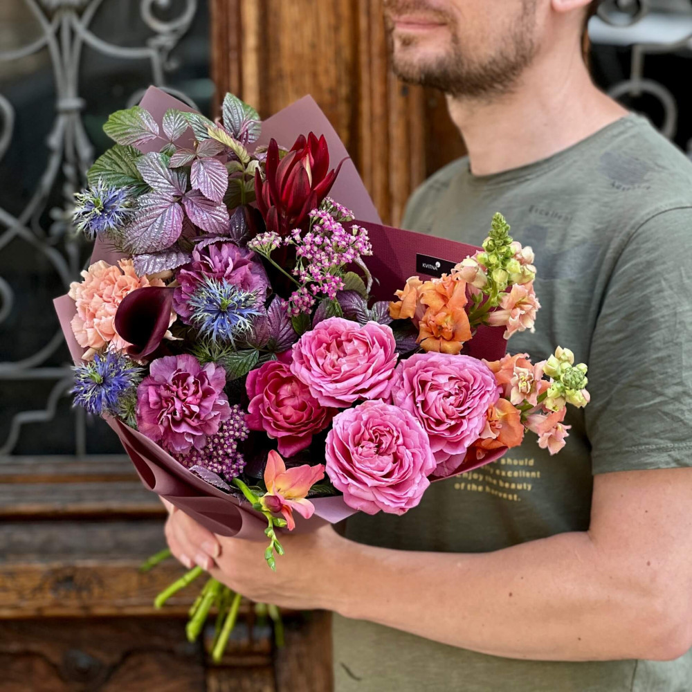 І це, до речі, зовсім не обов'язково плюси, це особливості, які потрібно розуміти. Тоді і вибір «де купити букет у Львові» зробити буде значно простіше.- Кожен букет Kvitna унікальний. Це означає, якщо Ви замовите у нас якийсь із букетів на сайті, то Ви не отримаєте точнісінько такий же. Деяких це бентежить, такі люди не хочуть «ризикувати», бажають «в точності, як на світлині». У «Квітна» кожен букет — це творчий пошук, це захоплення, злиття з квітами, образом одержувача і завданням. Так, ми можемо прийняти за вектор, зробити схожий букет, в тому ж стилі, кольоровій гамі, з тих самих квітів ... Але нам нудно робити за шаблоном. Адже букет, представлений на зображенні, робився для іншої людини, з іншого приводу, під інший настрій і натхнення. У Вас буде все по-іншому.