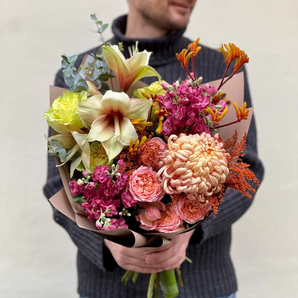 І це, до речі, зовсім не обов'язково плюси, це особливості, які потрібно розуміти. Тоді і вибір «де купити букет у Львові» зробити буде значно простіше.- Кожен букет Kvitna унікальний. Це означає, якщо Ви замовите у нас якийсь із букетів на сайті, то Ви не отримаєте точнісінько такий же. Деяких це бентежить, такі люди не хочуть «ризикувати», бажають «в точності, як на світлині». У «Квітна» кожен букет — це творчий пошук, це захоплення, злиття з квітами, образом одержувача і завданням. Так, ми можемо прийняти за вектор, зробити схожий букет, в тому ж стилі, кольоровій гамі, з тих самих квітів ... Але нам нудно робити за шаблоном. Адже букет, представлений на зображенні, робився для іншої людини, з іншого приводу, під інший настрій і натхнення. У Вас буде все по-іншому.