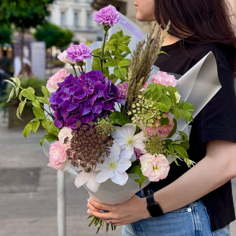 - Як замовити Цікавий букет з гортензією «Вечірній серпанок»? ❯