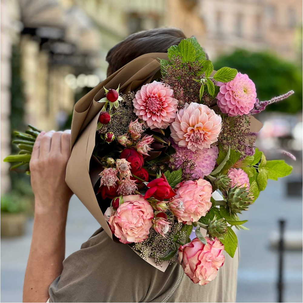 - А ще в конверт ми покладемо сюрприз! Який – ми не скажемо (інакше який це сюрприз), але можемо натякнути – можна на 100% гарантувати, що Ваш букет запам'ятають надовго!