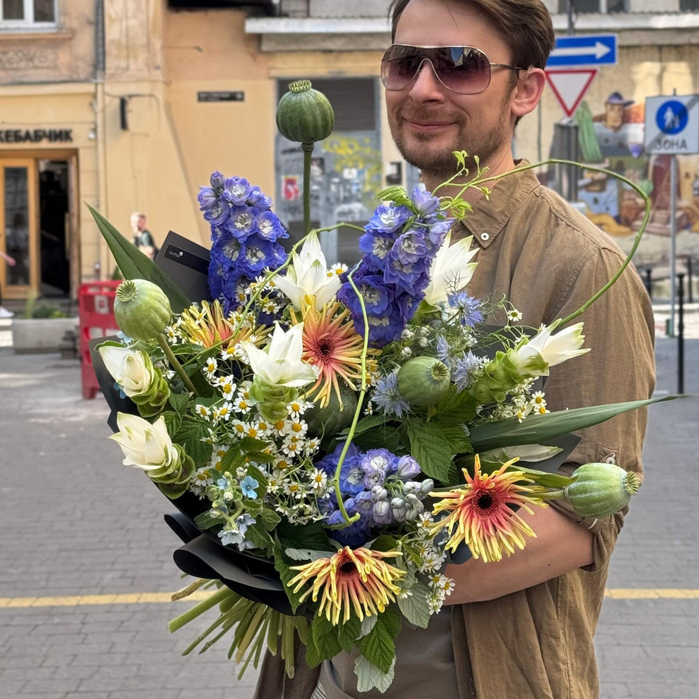 - Як замовити Цікавий об'ємний літній букет «Яскравий момент»? ❯