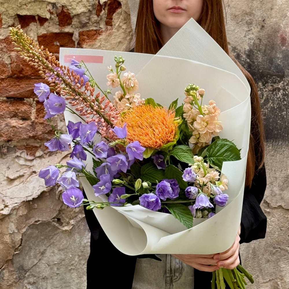 - Як замовити Цікавий сезонний букет з екзотичним скадоксусом «Вечірній промінь»? ❯