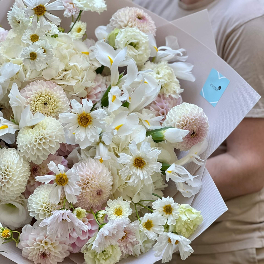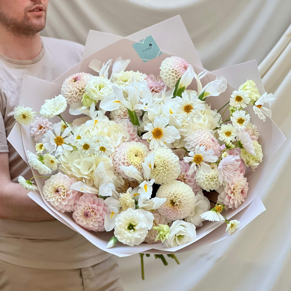 І це, до речі, зовсім не обов'язково плюси, це особливості, які потрібно розуміти. Тоді і вибір «де купити букет у Львові» зробити буде значно простіше.- Кожен букет Kvitna унікальний. Це означає, якщо Ви замовите у нас якийсь із букетів на сайті, то Ви не отримаєте точнісінько такий же. Деяких це бентежить, такі люди не хочуть «ризикувати», бажають «в точності, як на світлині». У «Квітна» кожен букет — це творчий пошук, це захоплення, злиття з квітами, образом одержувача і завданням. Так, ми можемо прийняти за вектор, зробити схожий букет, в тому ж стилі, кольоровій гамі, з тих самих квітів ... Але нам нудно робити за шаблоном. Адже букет, представлений на зображенні, робився для іншої людини, з іншого приводу, під інший настрій і натхнення. У Вас буде все по-іншому.
