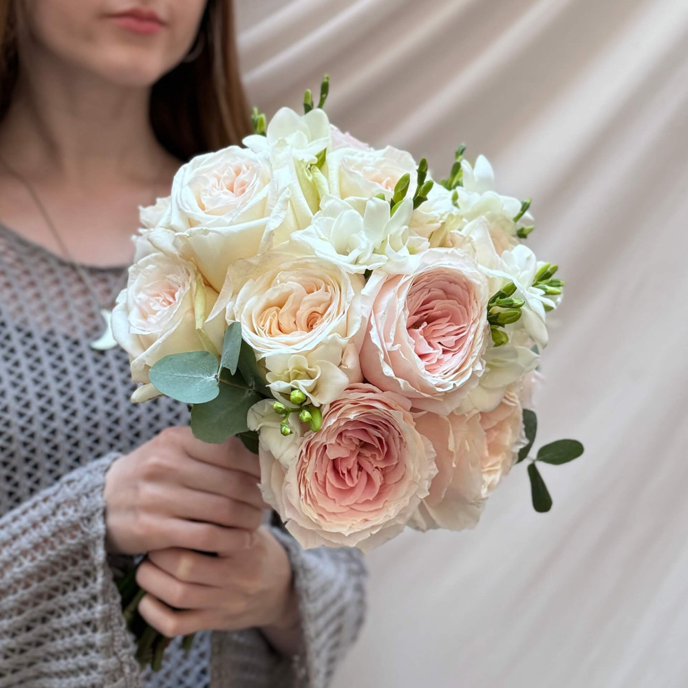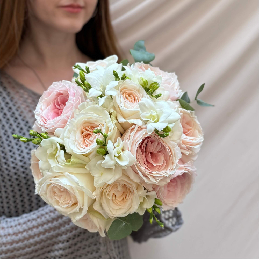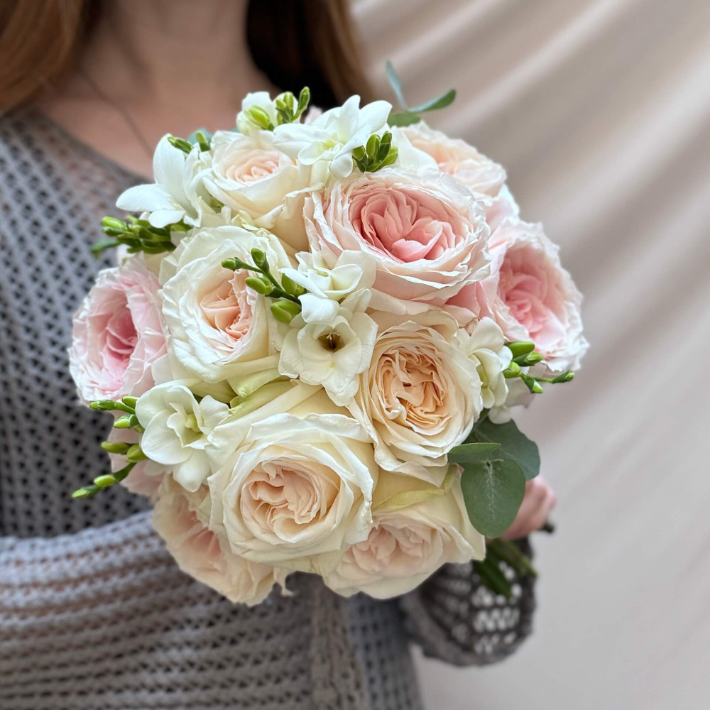 Квіти: Троянда піоновидна, Фрезія, Евкаліпт