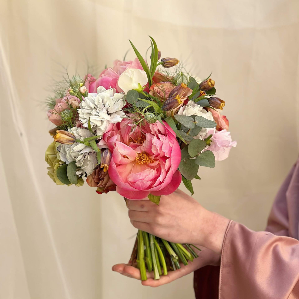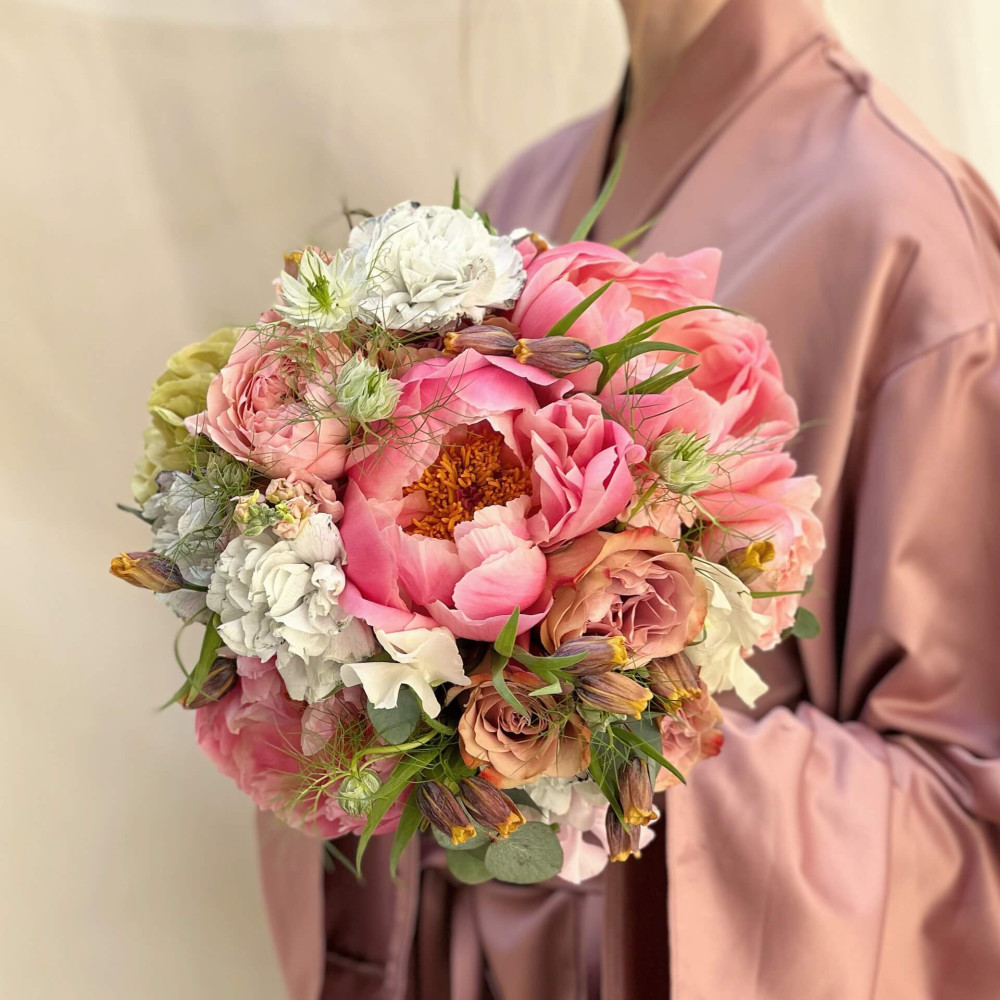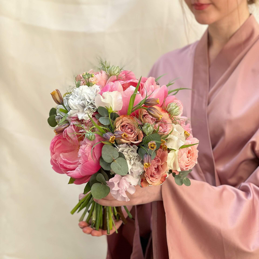 Квіти: Півонія, Троянда, Латірус, Нігела, Евкаліпт, Діантус, Фрітіларія