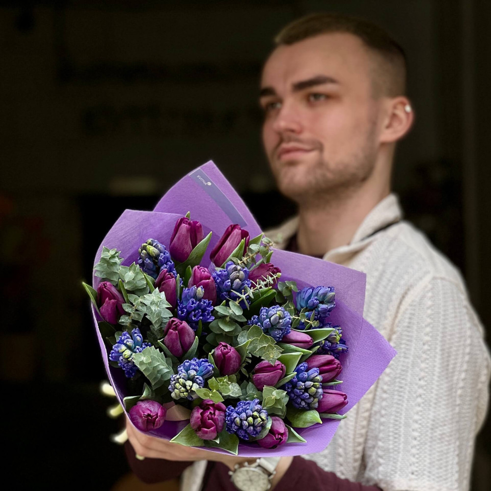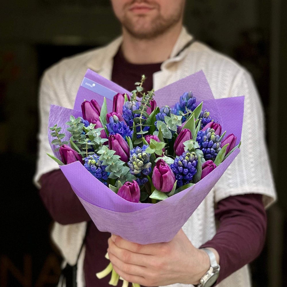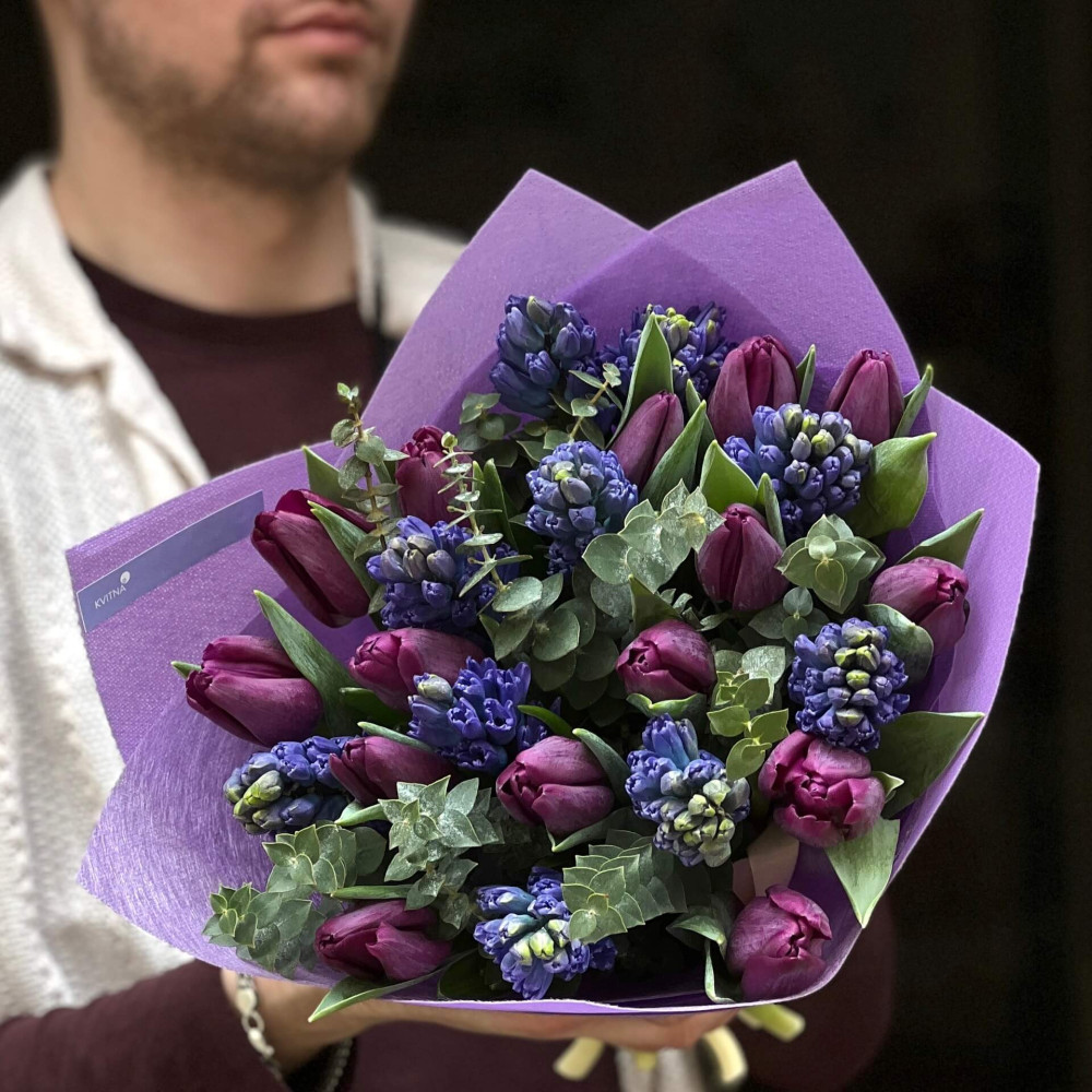 - Як замовити Весняний букет у глибоких відтінках «Таємнича ніч»? ❯