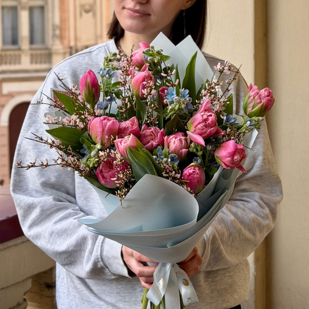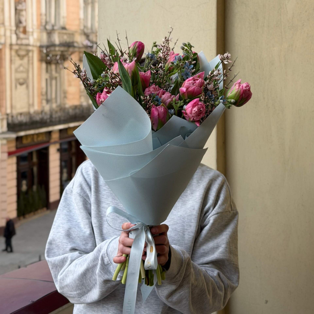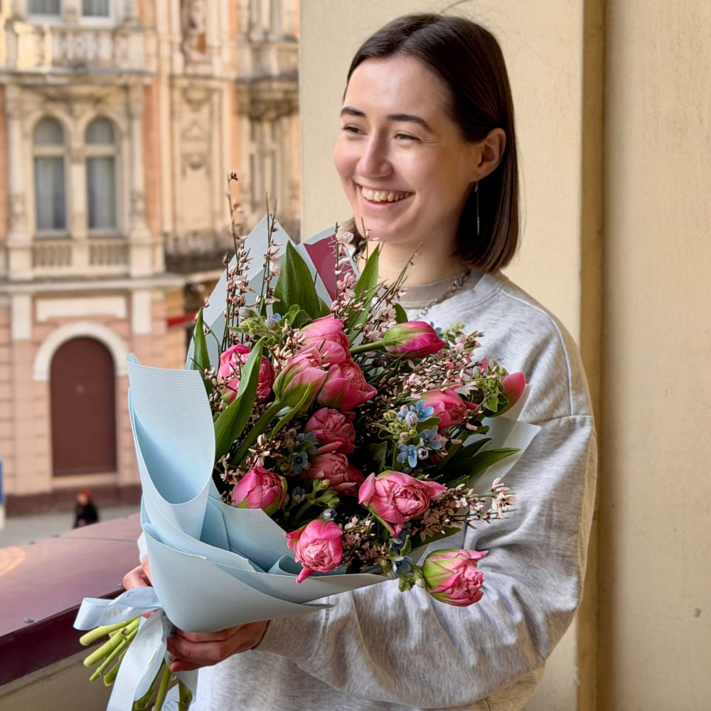 FAQ по Весняний грайливий букет з французькими тюльпанами Strawberry Cream «Рожева весна»
